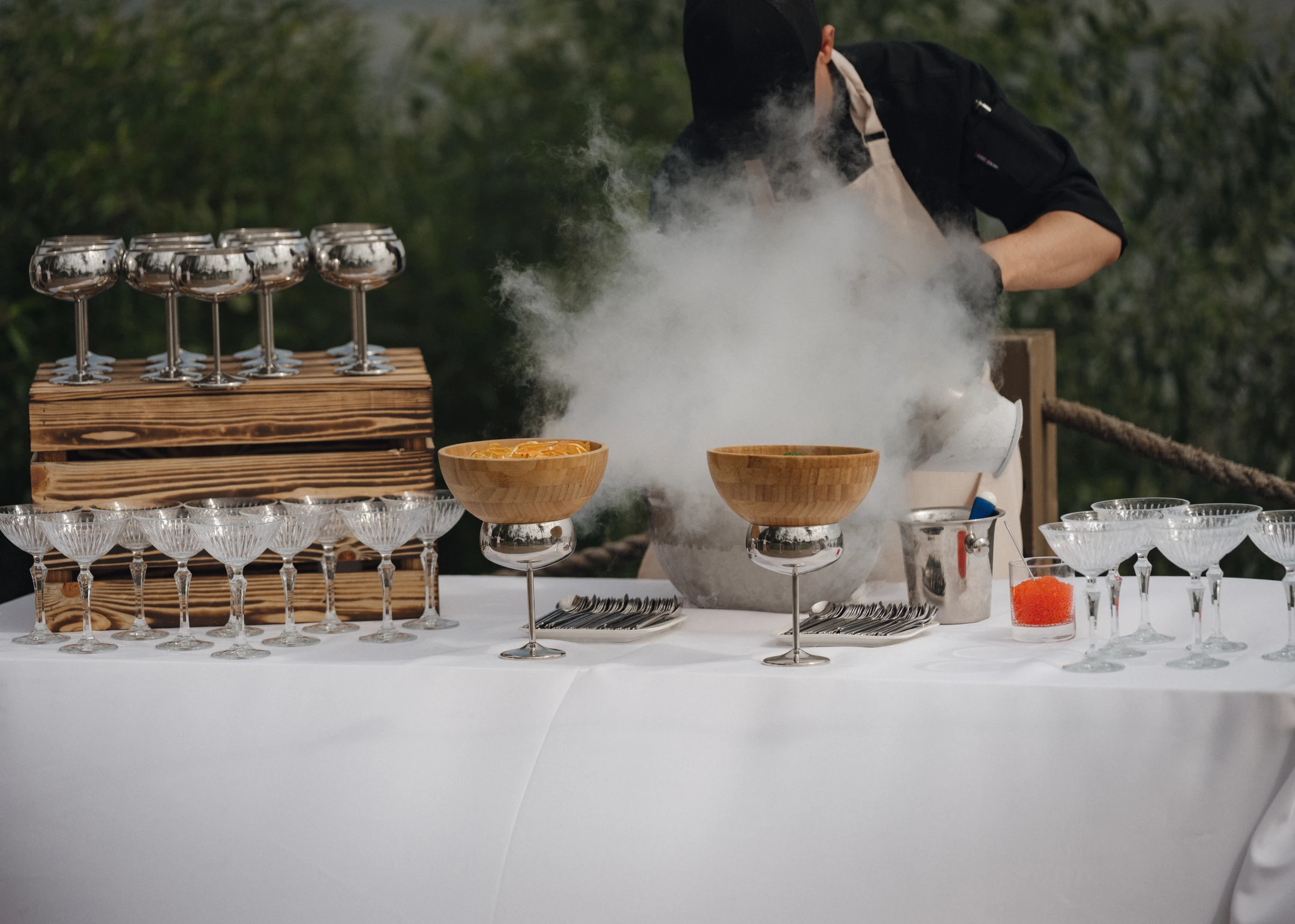 - Вместо затянутых тостов и шаблонных конкурсов, мы предлагаем динамичный формат, сочетающий элегантность и свободу: официальная часть в банкетном зале плавно переходит в вечеринку на берегу