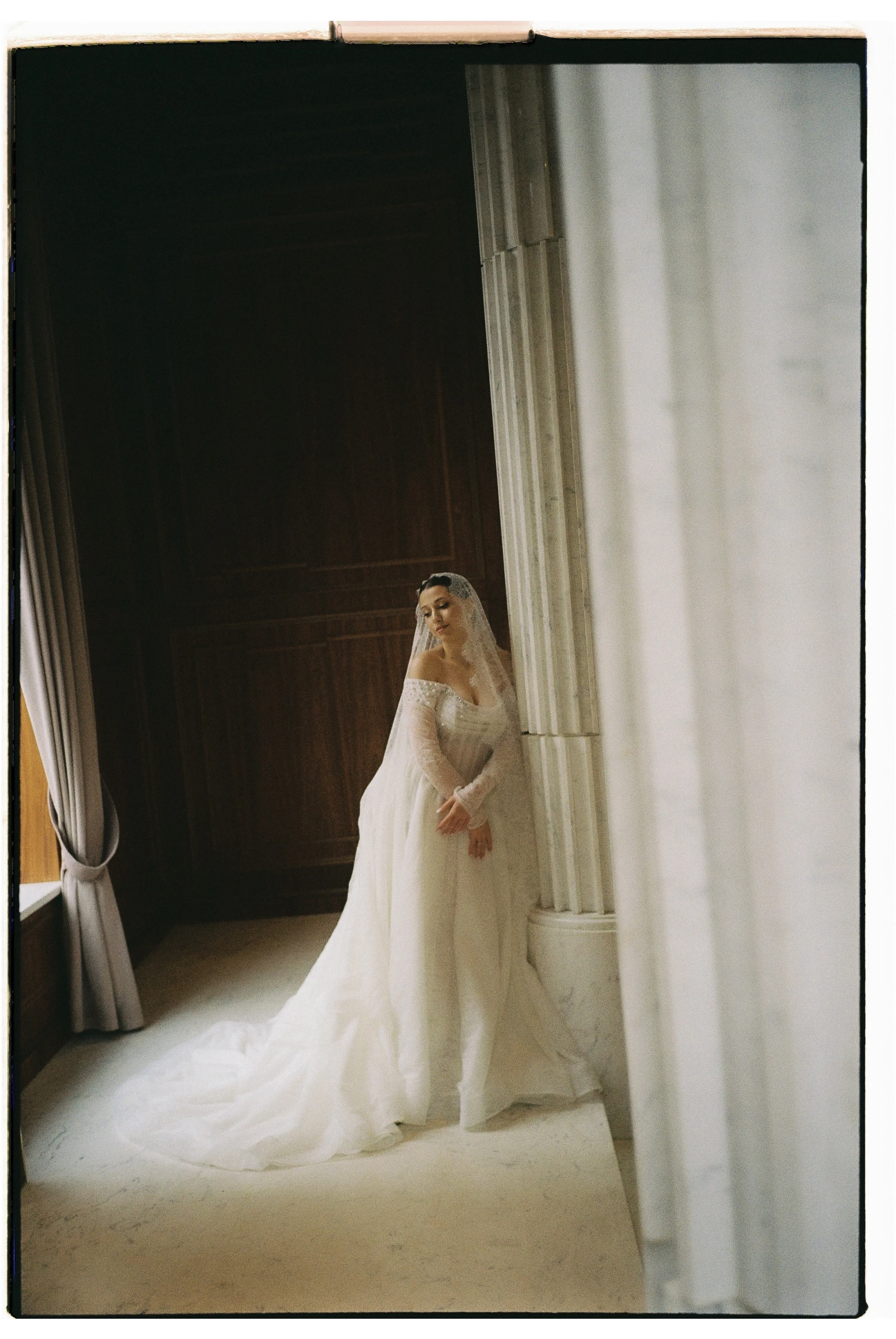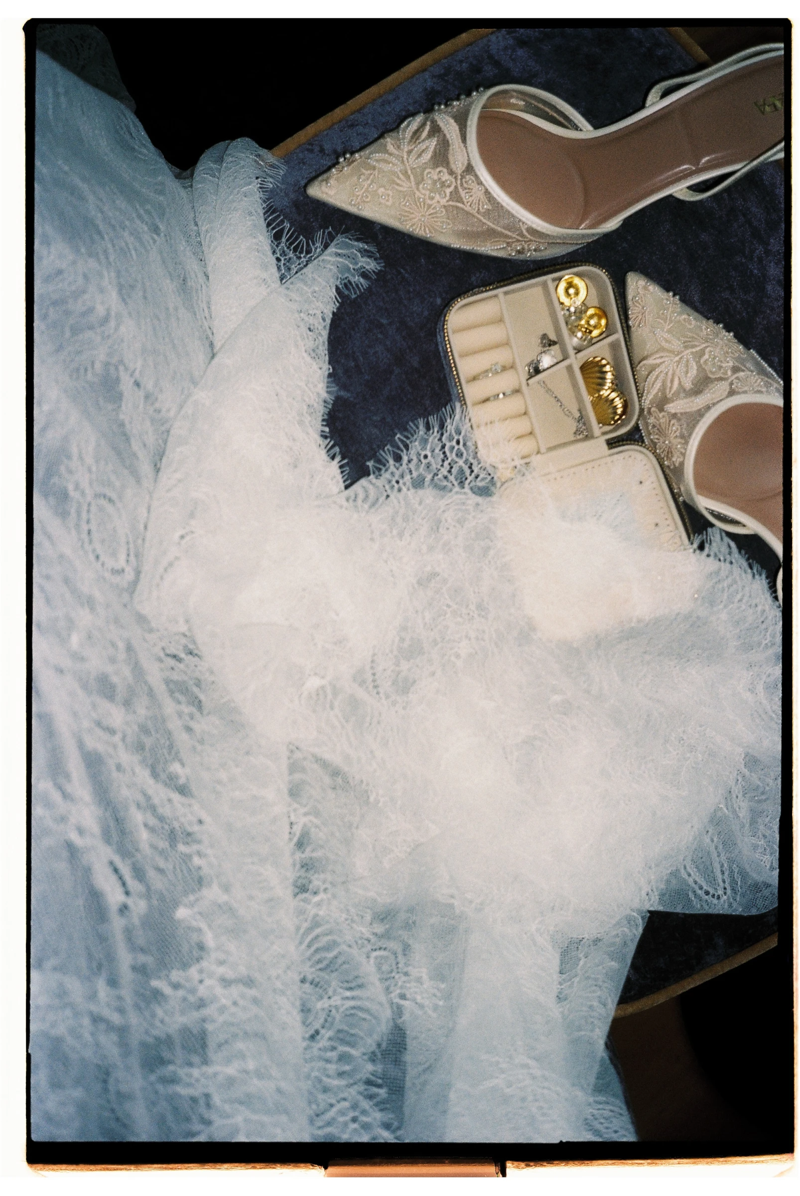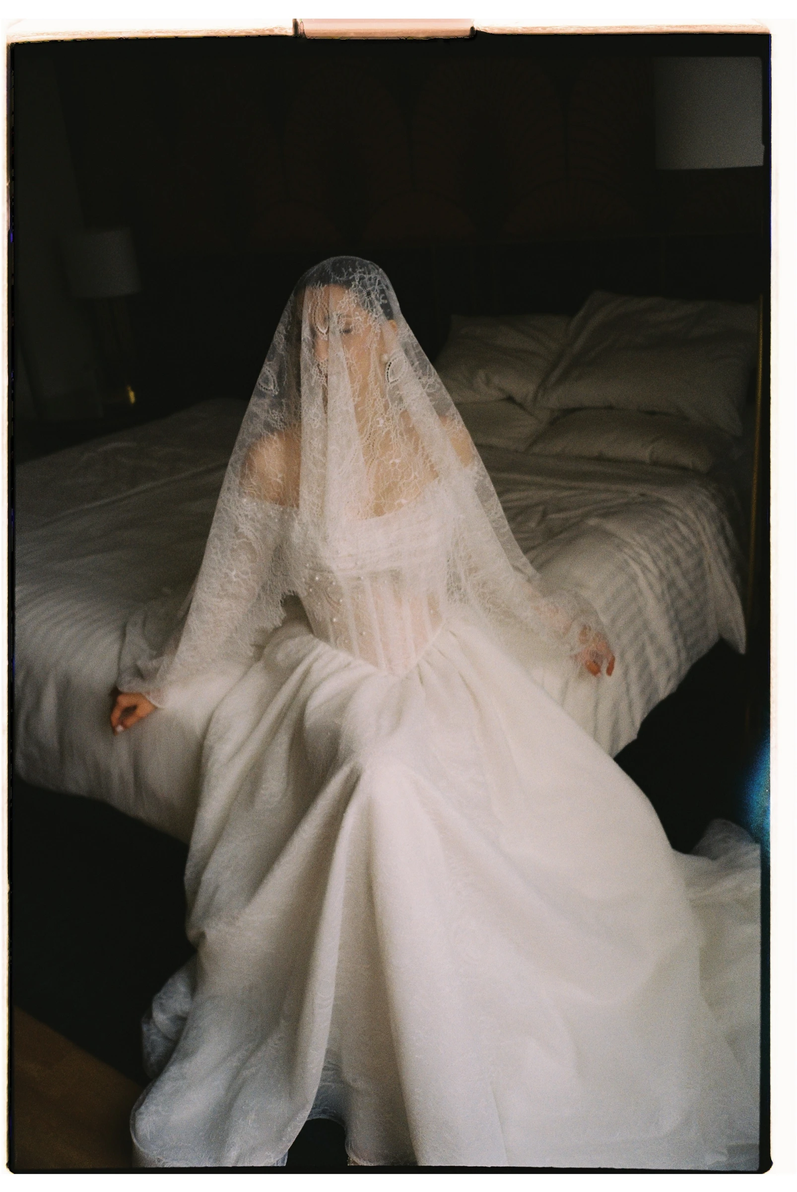 Anti-bride никуда не уходит: платья-комбинации, костюмы, мини, несколько аутфитов за день и множество вариантов для второго образа. Вечерний образ становится более смелым: прозрачные элементы, драпировки, шлейфы, корсетные детали, но без эффекта «торта». Главный акцент смещается с одного огромного платья на аксессуары и серьезные украшения: массивные серьги, броши, цепи, капюшоны и капоры из шелка или сетки, неформальные чокеры вместо классических подвесок.