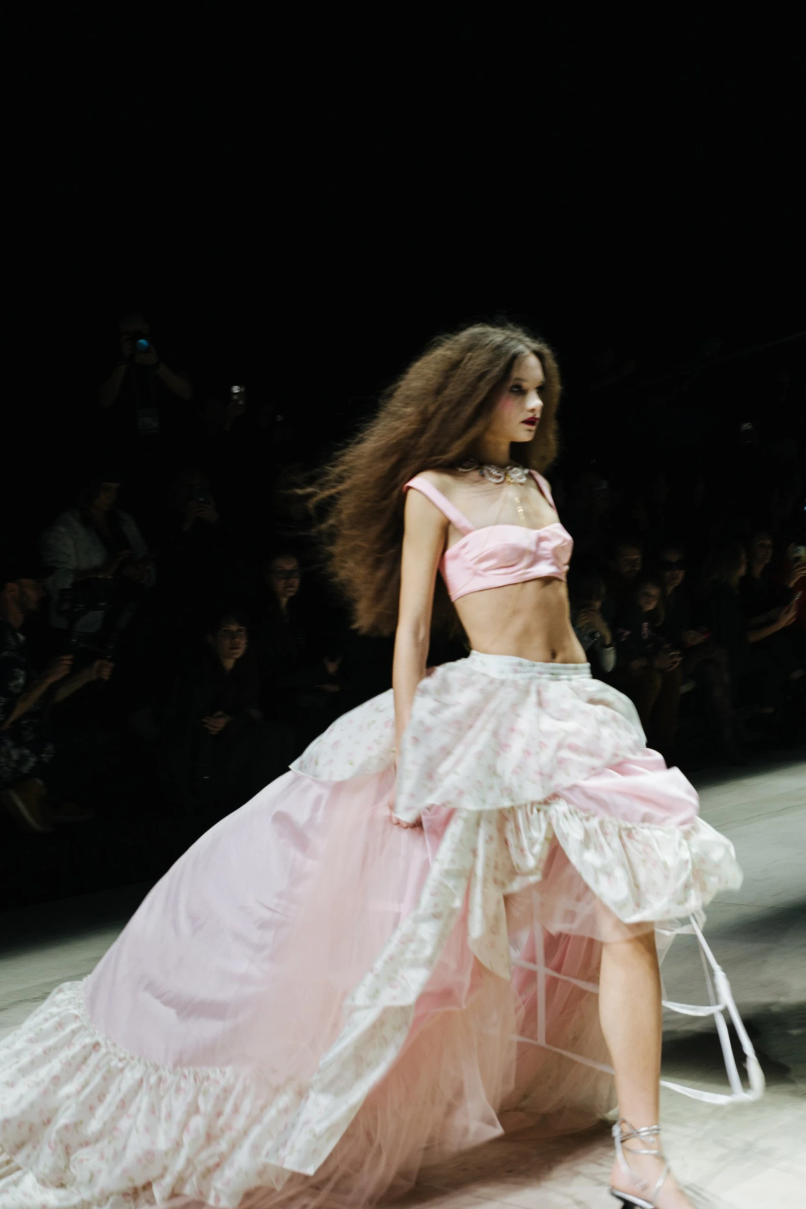Теперь готика звучит иначе: «инопланетные» декоративные элементы и сложные архитектурные линии гармонично сочетаются с отголосками прошлого — кружевными вставками, полупрозрачными тканями, рюшами и глубокими темными оттенками. За вдохновением стоит обратиться к коллекциям Capparel 21 и Viva Vox.
