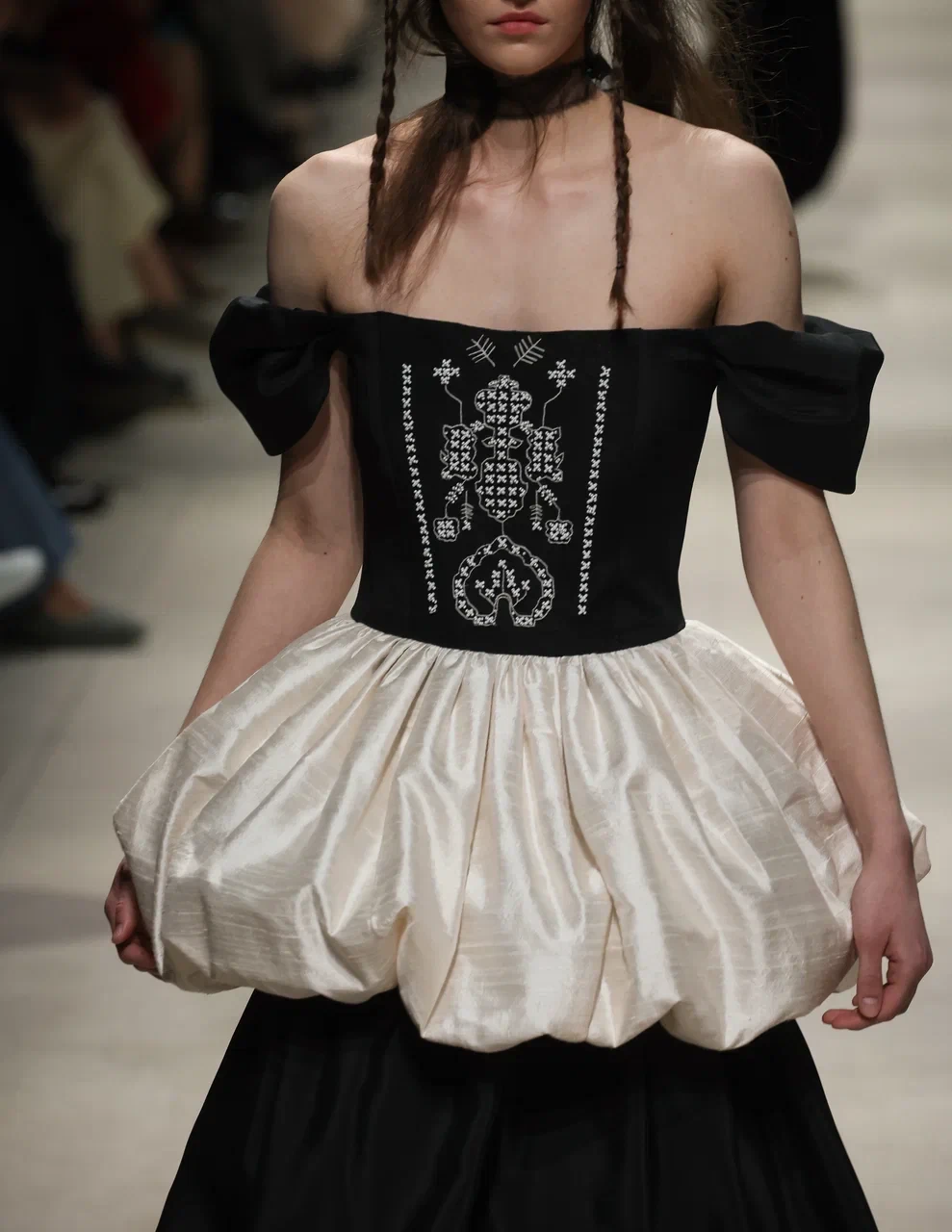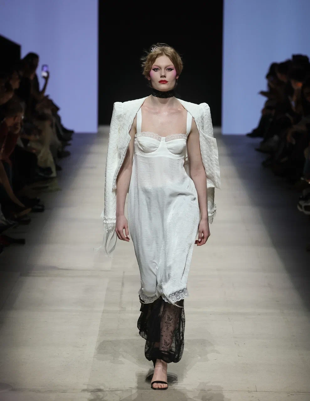 Так, Новосибирский технологический институт РГУ им. А.Н. Косыгина представил небрежное бельевое мини в духе Baby doll, а расслабленное бельевое платье с сумкой-наволочкой бренда Unke может послужить идеальным полноценным референсом для свадебного образа в стиле Bedtime.