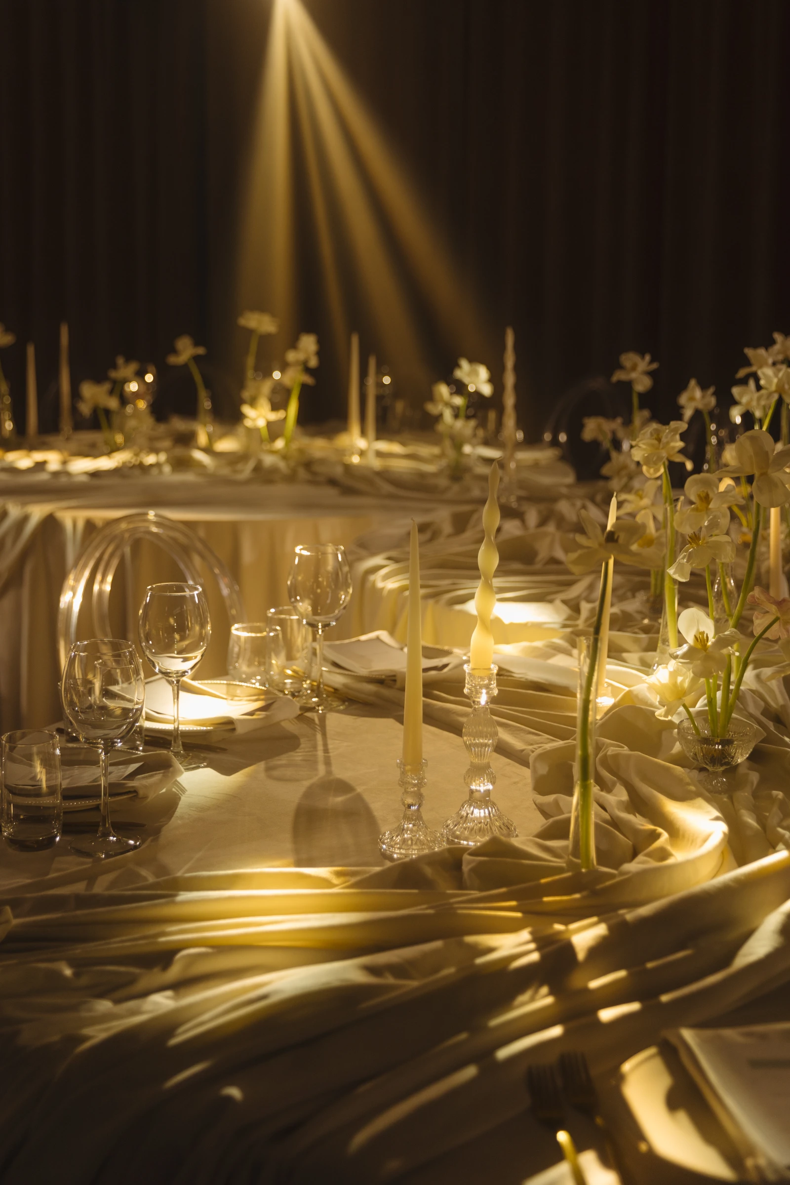 Световое и звуковое оборудование не менее важны. Каким бы талантливым ни был ведущий, если колонки «шуршат» и его не слышно, — гости просто начнут выходить из зала. Это не его вина, это проблема технического обеспечения. То же касается и света: обычное интерьерное освещение ресторана выполняет совсем другую функцию. Художественный свет создает атмосферу, которая меняется в течение вечера. В нашей работе мы прописываем не менее 7–8 световых сцен. И конечно, качественный свет напрямую влияет на итог работы фотографа и видеографа.