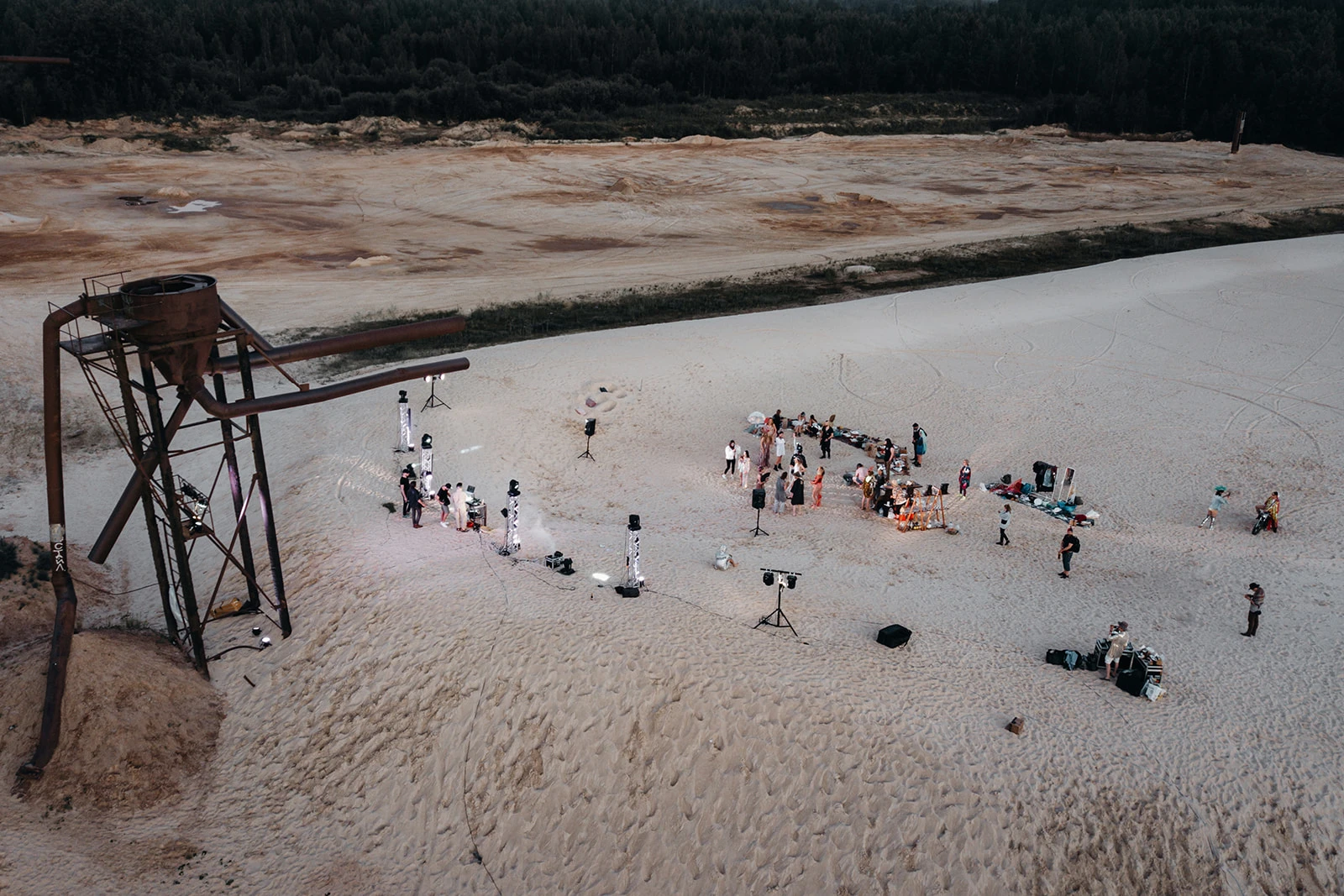 Клубы, индустриальные локации, цеха, арт-пространства. Но также на контрасте хорошо вписывается и залы с классической архитектурой (особняки, дворцы), особенно немного обветшалые. Главное, чтобы это были места, которые уже несут энергию и становятся частью художественного высказывания.