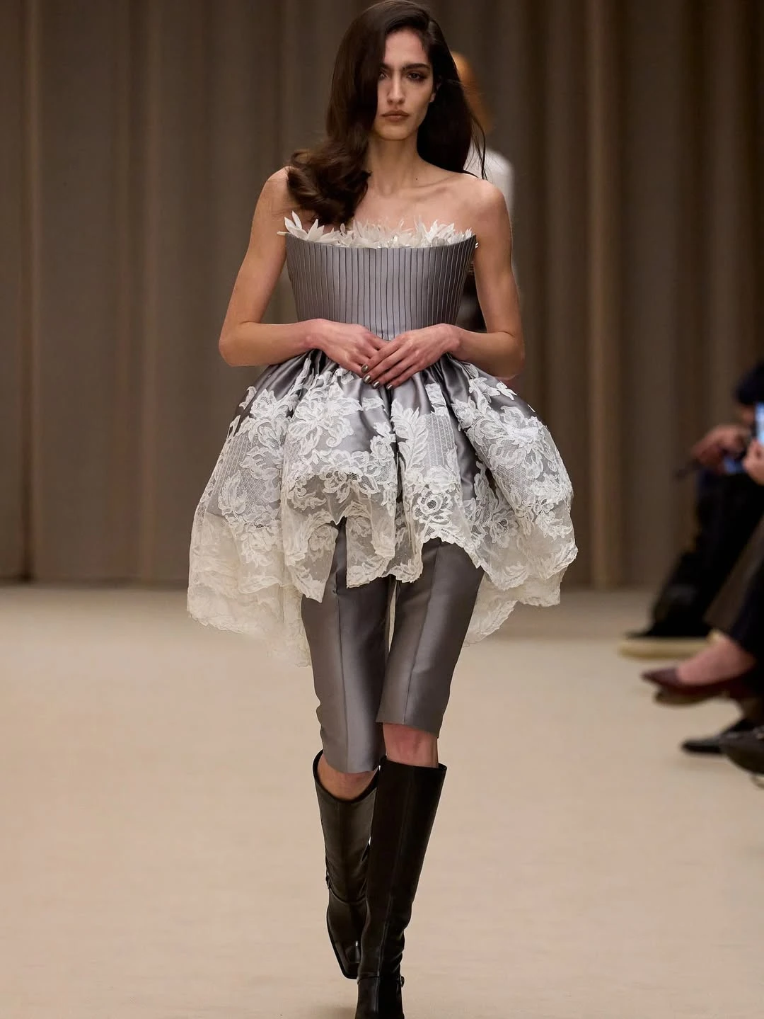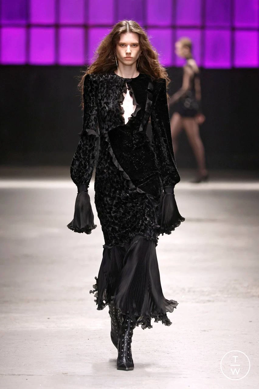 Готический стиль обретает новые очертания, сохраняя традиции прошлого и внедряя элементы футуризма. Викторианская эстетика словно переносится в будущее, поэтому манжеты становятся все объемнее и длиннее, материалы — фактурнее, а корсеты обретают геометрию. Jean Paul Gaultier поддержали такую идею, представив фигурные платья. А вот Roberto Cavalli постарались выдержать баланс, сместив фокус на гибридный материал и в меру акцентные манжеты.