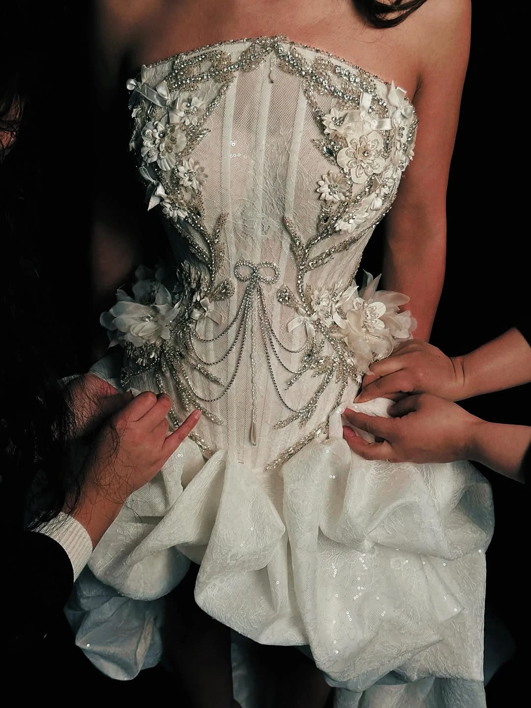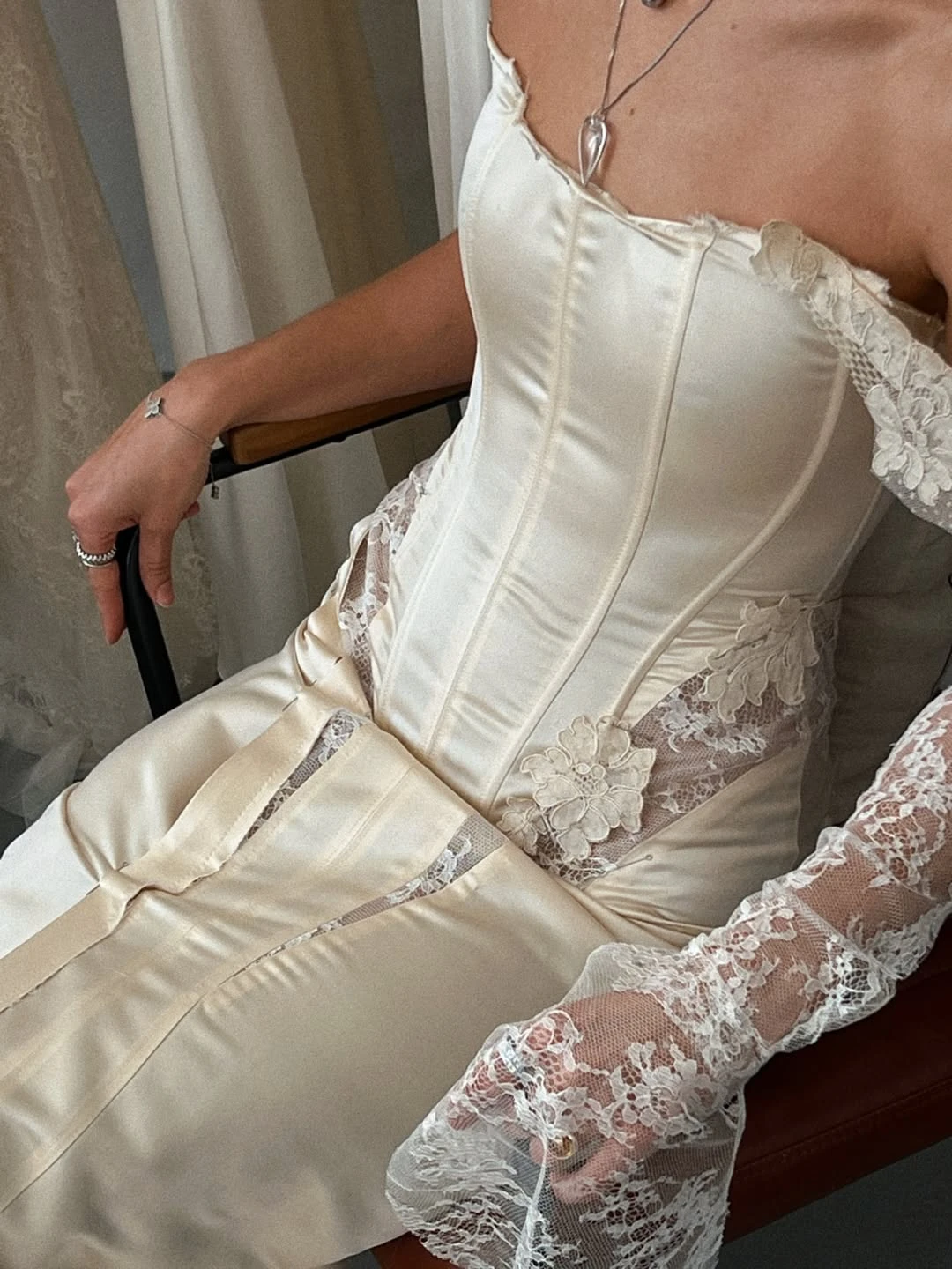 Особое внимание стоит уделить корсету или лифу — посадка должна быть безупречной, без перекосов и давления. Эта зона сложнее всего поддается корректировке, поэтому компромиссы здесь недопустимы. Не бойтесь примерять разные варианты, даже те, которые изначально не рассматривали. Очень часто идеальное платье оказывается совсем не таким, каким вы его представляли.