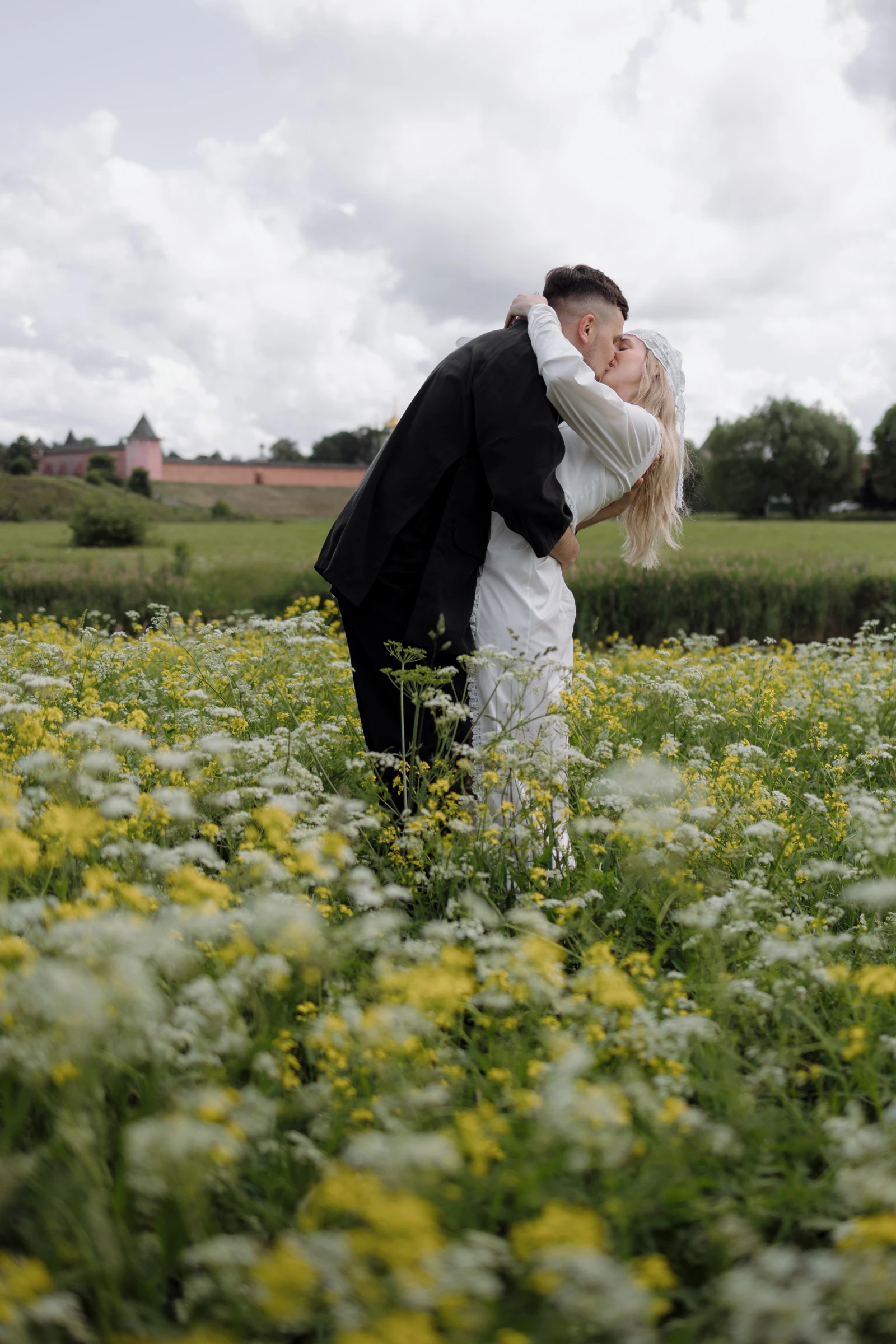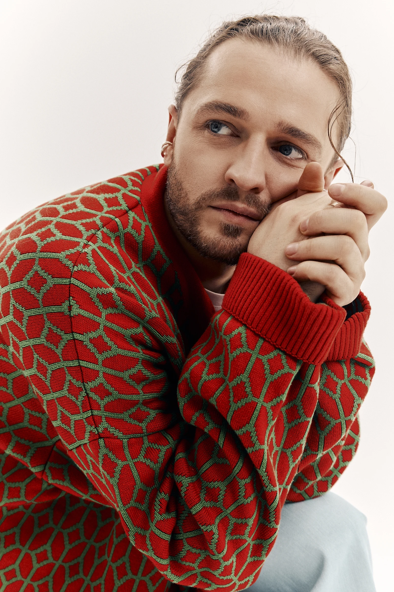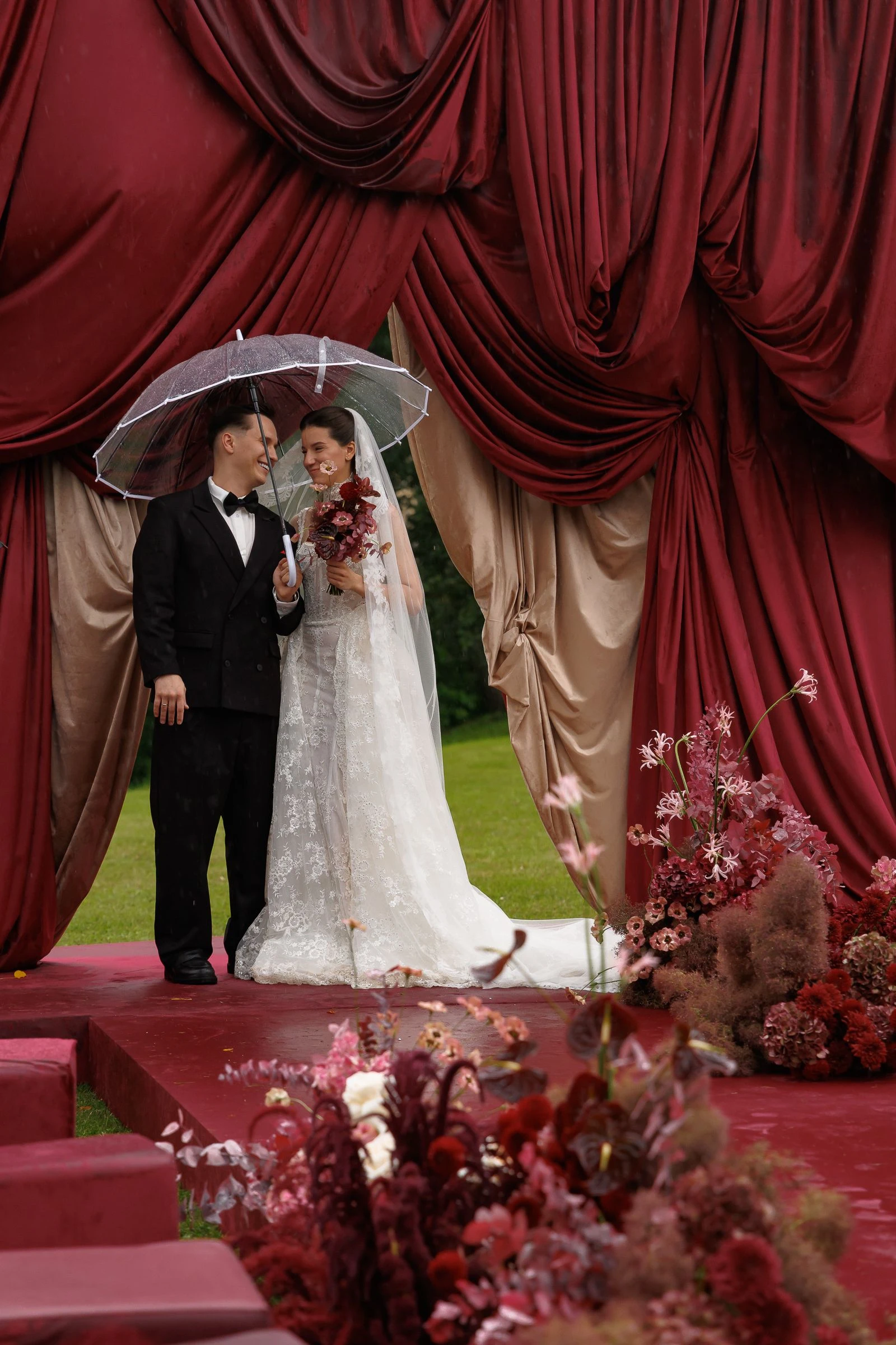 Образ Кардашьян также включал массивное жемчужное колье, стилизованное под украшение принцессы Дианы, которое состояло из одиннадцати нитей жемчуга, рубинов и бриллиантов. Гладкое каре с боковым пробором и естественный макияж с акцентом на глаза — завершил весь ансамбль.