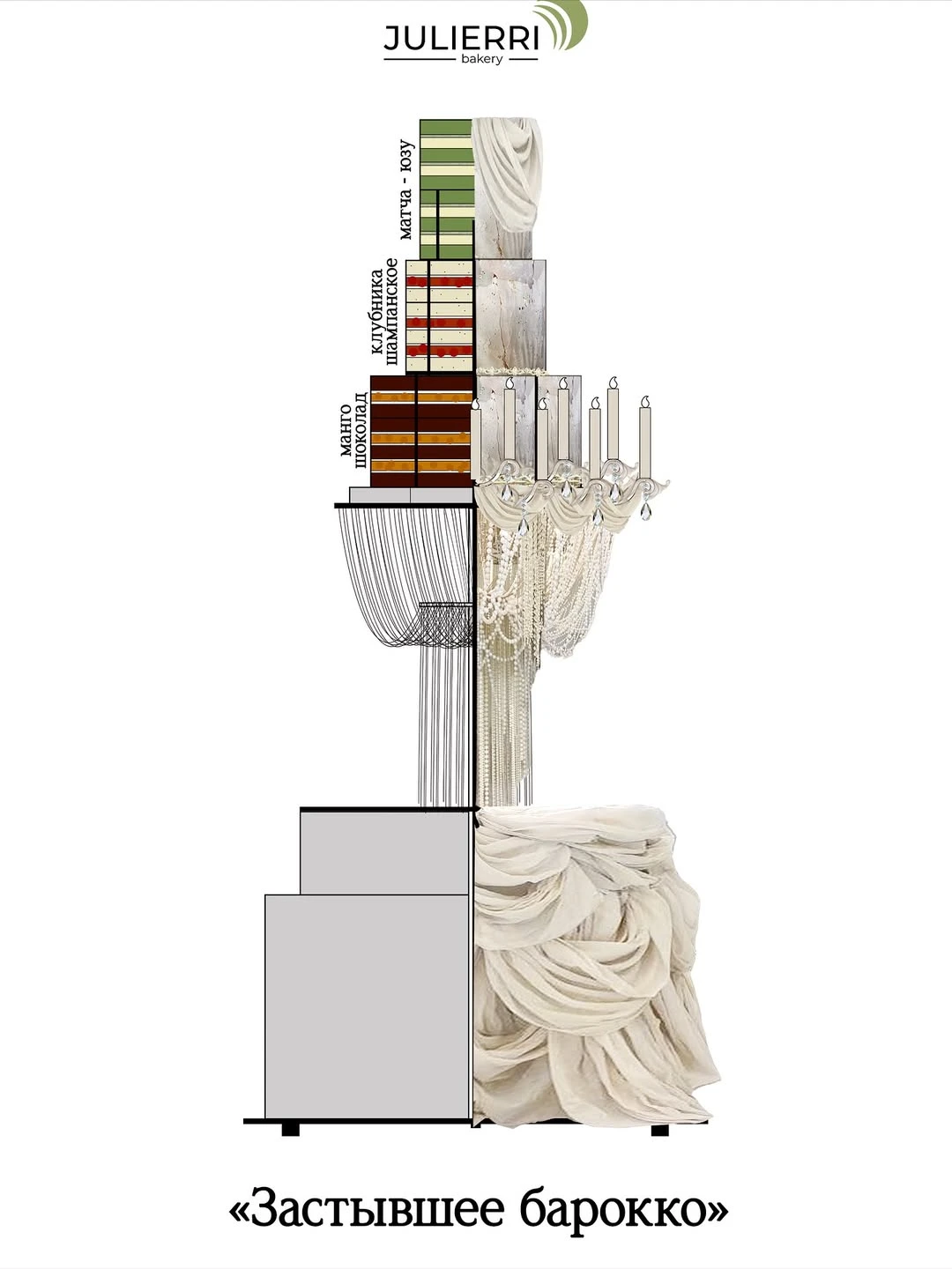 Мой кондитерский путь начался суперстихийно и неожиданно, ведь по образованию я IT-специалист, а также есть неоконченное архитектурное образование. И будто бы ничего не предвещало беды. (Смеется.) Но в момент жизненного кризиса и понимания, что это все, конечно, хорошо, но почему-то это не то, я пошла на поиски себя и так оказалась поваром в одном из популярных в те годы ресторанов Санкт-Петербурга. Ну а дальше как в тумане. Хлоп, и вот я уже в кондитерском цеху постигаю азы кондитерского искусства. Кондитерская JULIERRI родилась в год глобальных перемен у многих людей — в пандемию. В бесконечной жизненной гонке получилось остановиться и перевести дух. Там и было решено, что я давно переросла работу в найме и готова делиться своим ви́дением вкусного и прекрасного. Чем я и занимаюсь уже почти шесть лет. Кстати, совсем не жалею об архитектурных и IT-знаниях. Они невероятно помогают в работе сегодня.