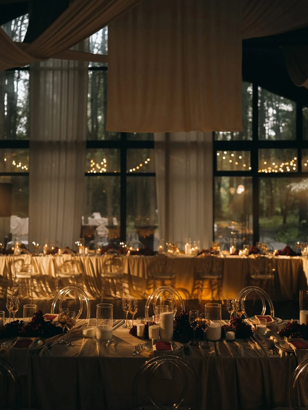 Пространство среди лиственного леса и у зеркального пруда в 6 километрах от столицы. Сердце комплекса — веранда площадью 315 квадратных метров с панорамным остеклением и видами на лес. Для церемоний под открытым небом есть три локации: площадка у пруда, пространство в глубине леса и зона с видом на природный ландшафт. Хрустальные люстры сочетаются с окружающей природой, создавая атмосферу для свадеб разных стилей. Шеф-повар разрабатывает индивидуальное меню с возможностью дегустации. Инфраструктура включает парковку на 30 мест, гримерную для артистов и разные варианты рассадки гостей.