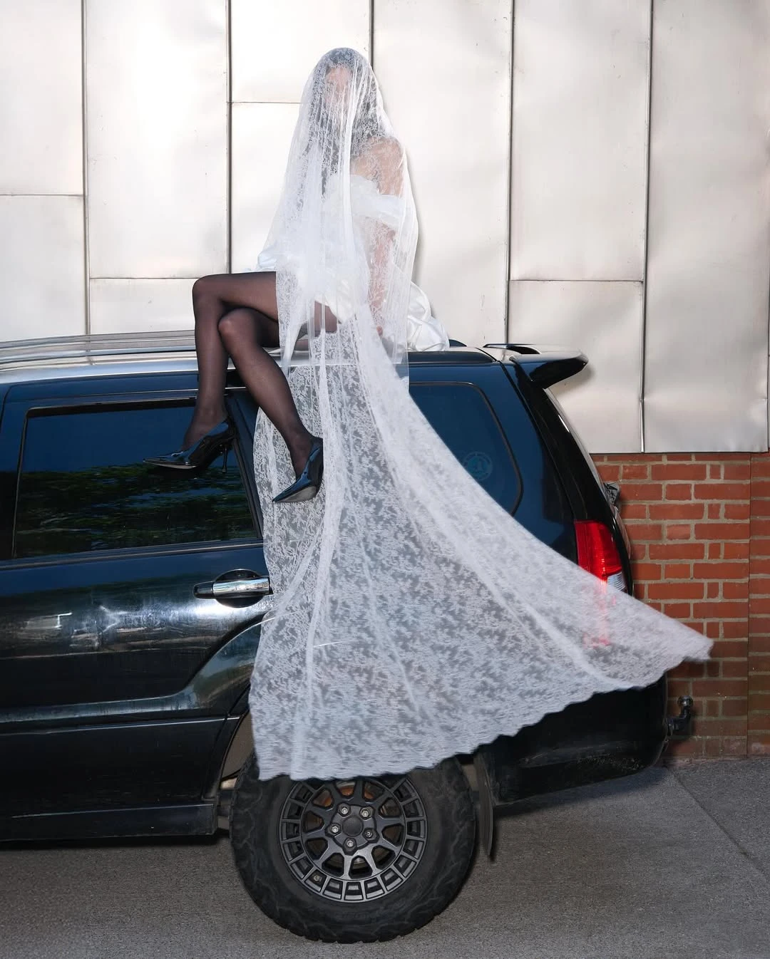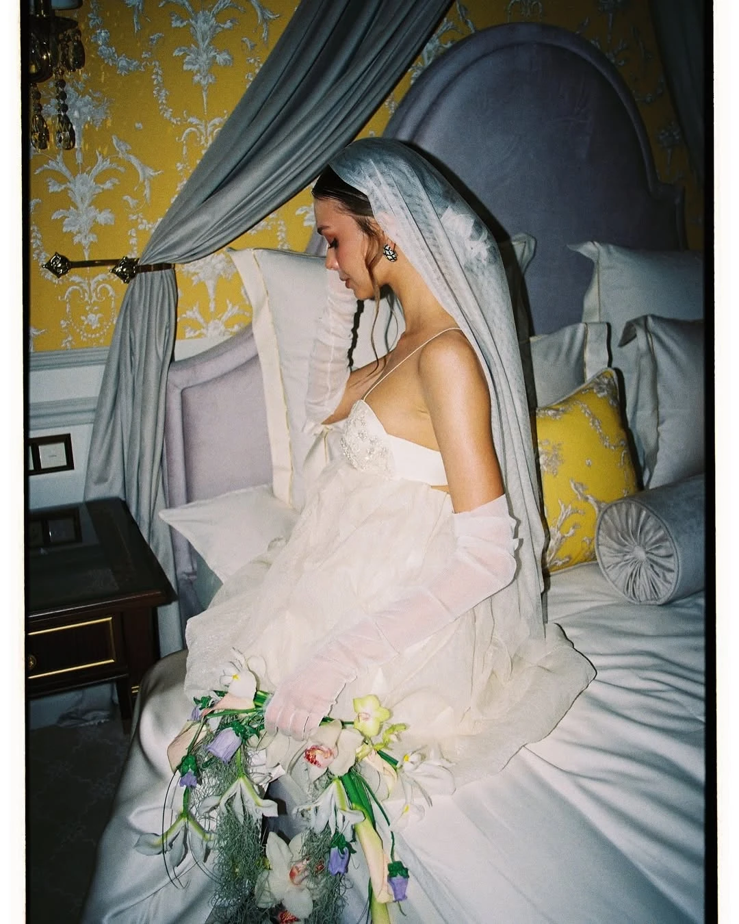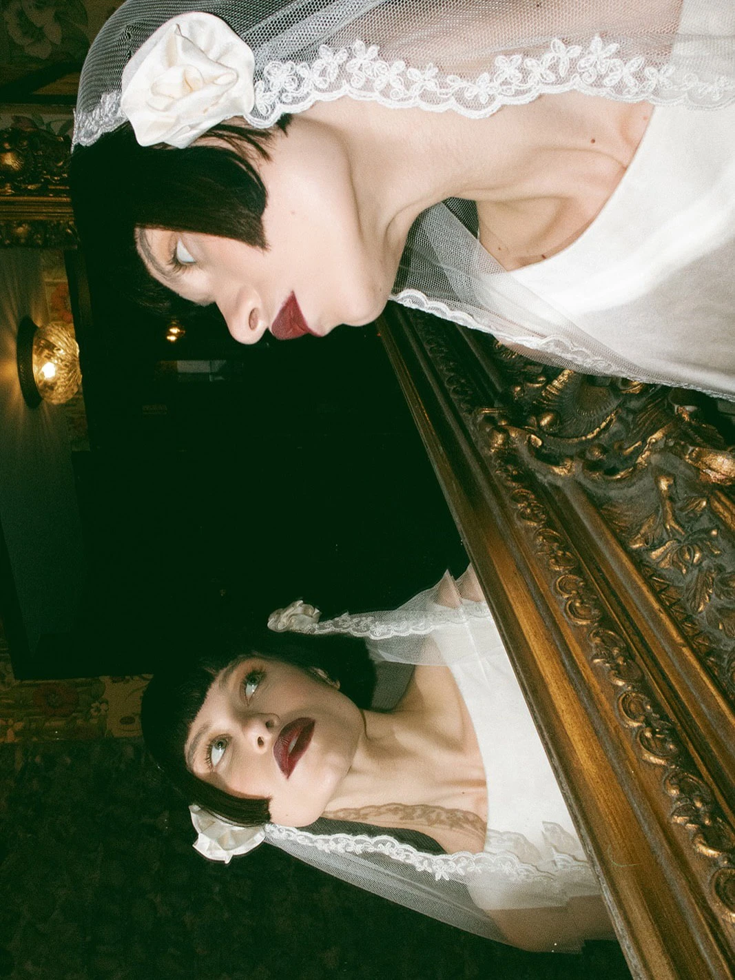 Это один из самых «требовательных» трендов, где решающую роль играет не форма, а специфика узора. Здесь особенно важно соблюдать стилистическую точность: орнаменты должны либо совпадать с фактурой платья, либо быть визуально совместимыми. Например, рифма плотного кордового кружева и тонкого шантилье в одном образе почти всегда приводит к визуальному конфликту текстур. Отдельного внимания заслуживает способ стилизации: фату с крупным кружевом можно закрепить так, чтобы узор мягко обрамлял лицо. В этом случае аксессуар выглядит максимально чисто по форме, сохраняя при этом выразительность и сложность деталей — без перегрузки, но с высокой степенью изысканности.