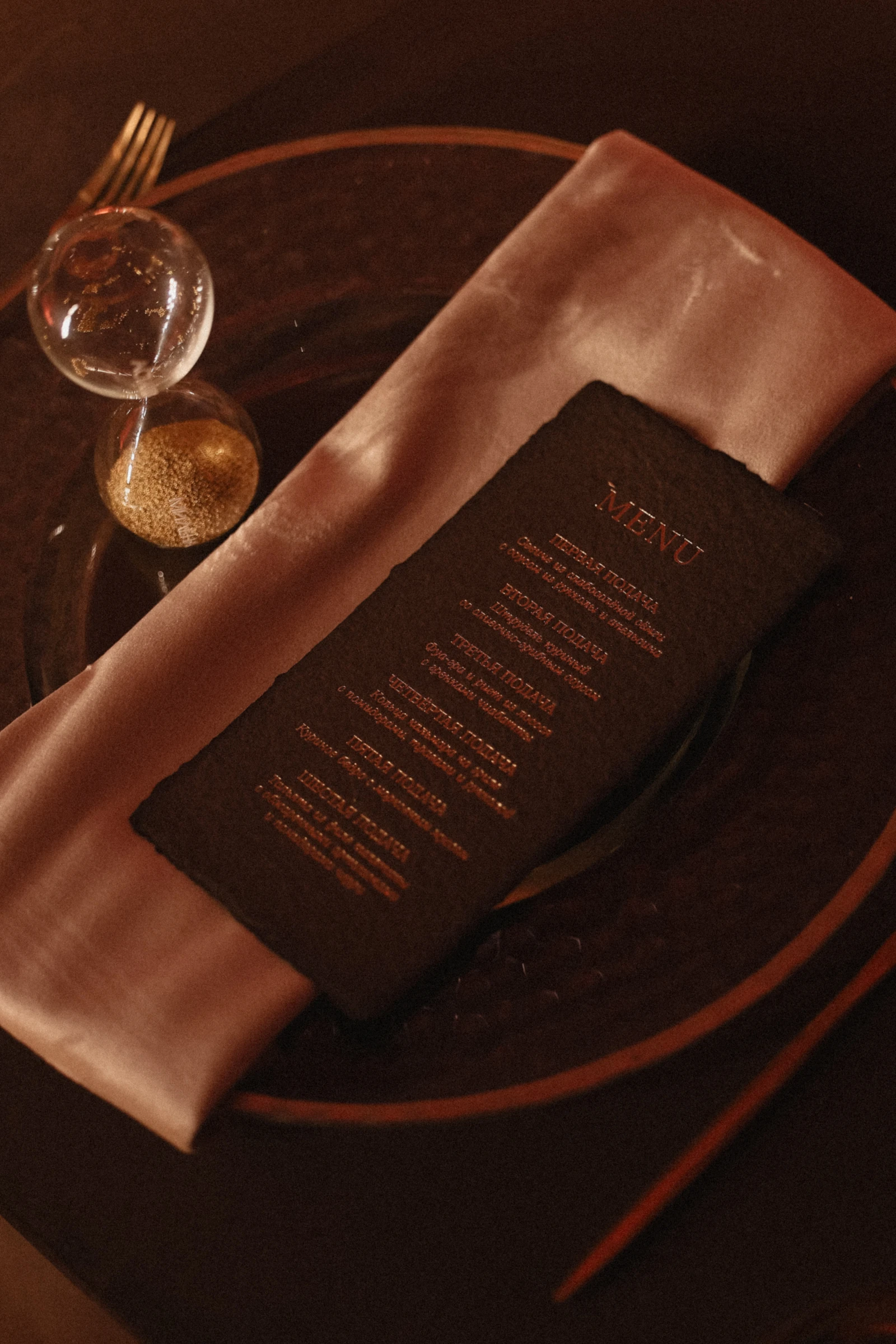 Тема времени была вплетена во все детали. Вместо классических карт рассадки — именные песочные часы: каждый гость получил физическое воплощение идеи, что время течет и его невозможно остановить, но можно осознанно прожить.
