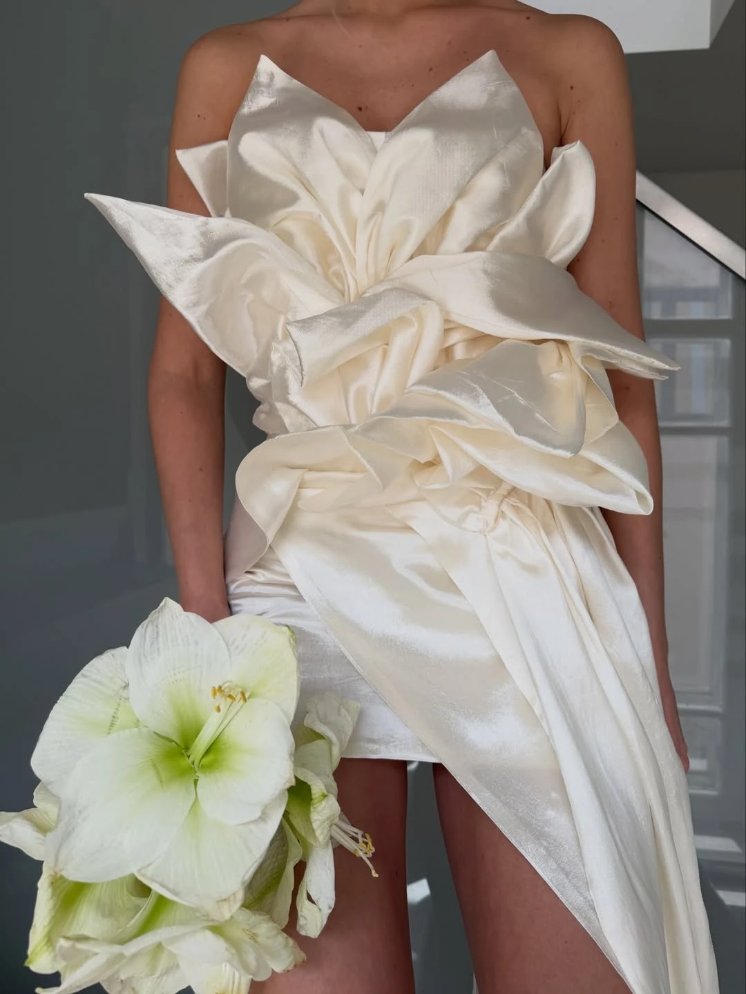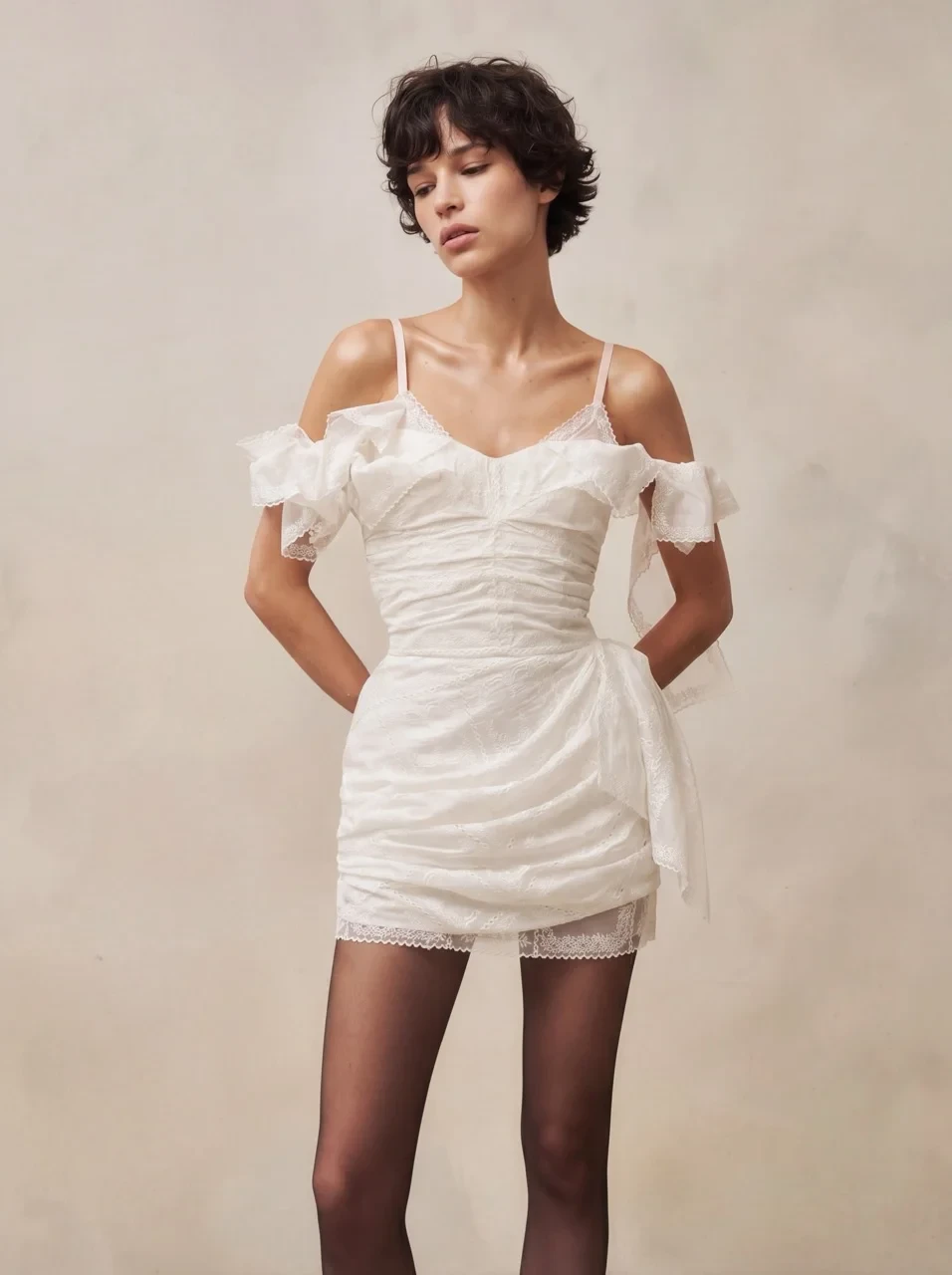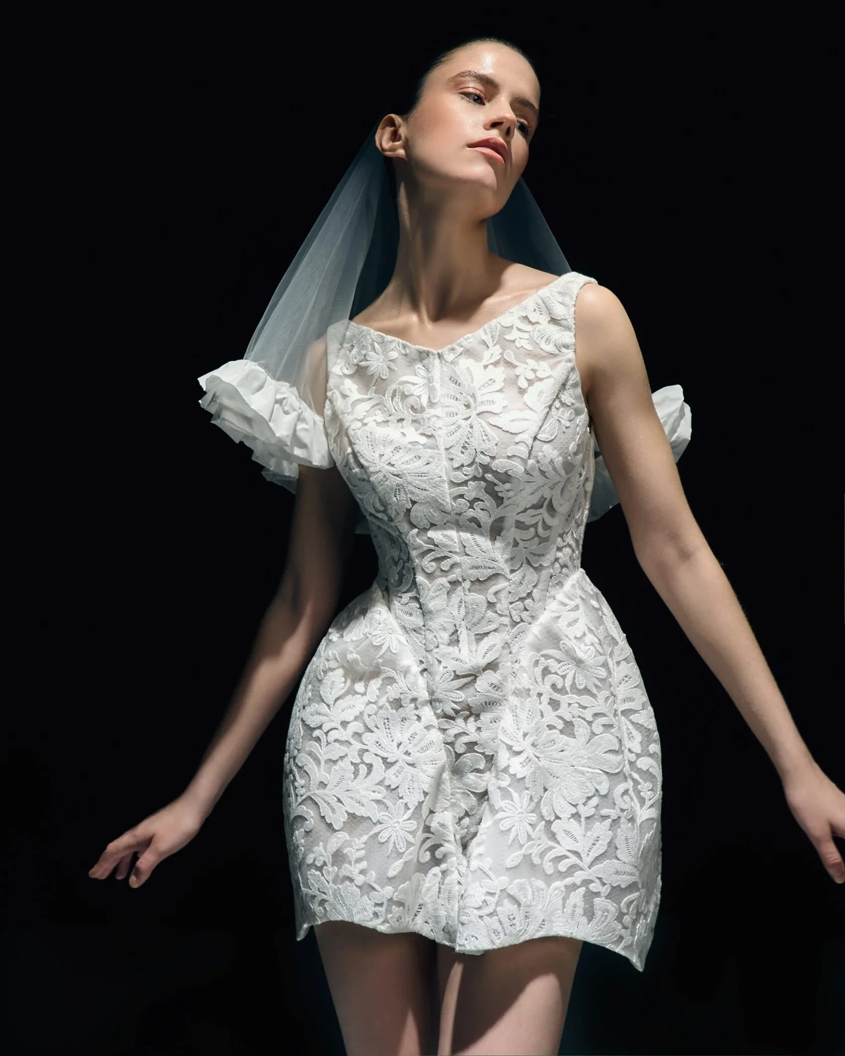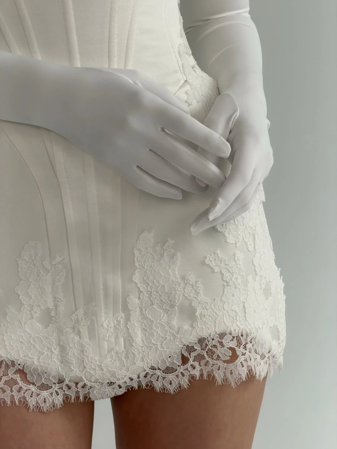 Ультрамини — самый смелый вариант, где длина едва достигает верхней части бедра. Безусловно, такой фасон выглядит провокационно и требует уверенности, а с точки зрения комфорта подходит далеко не всем. Тем не менее для эффектной фотосессии или второго свадебного образа ультракороткое платье может стать ярким модным заявлением.