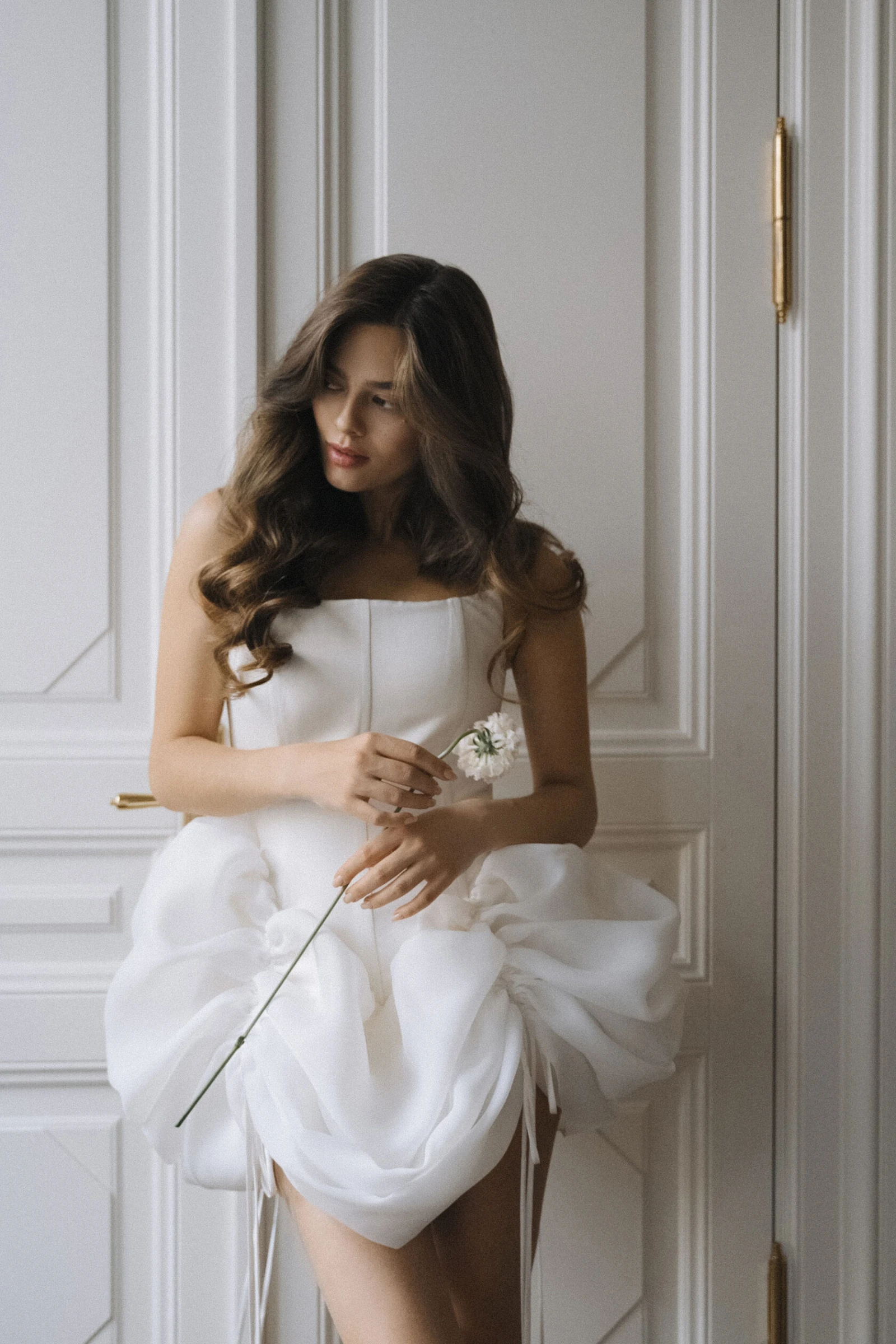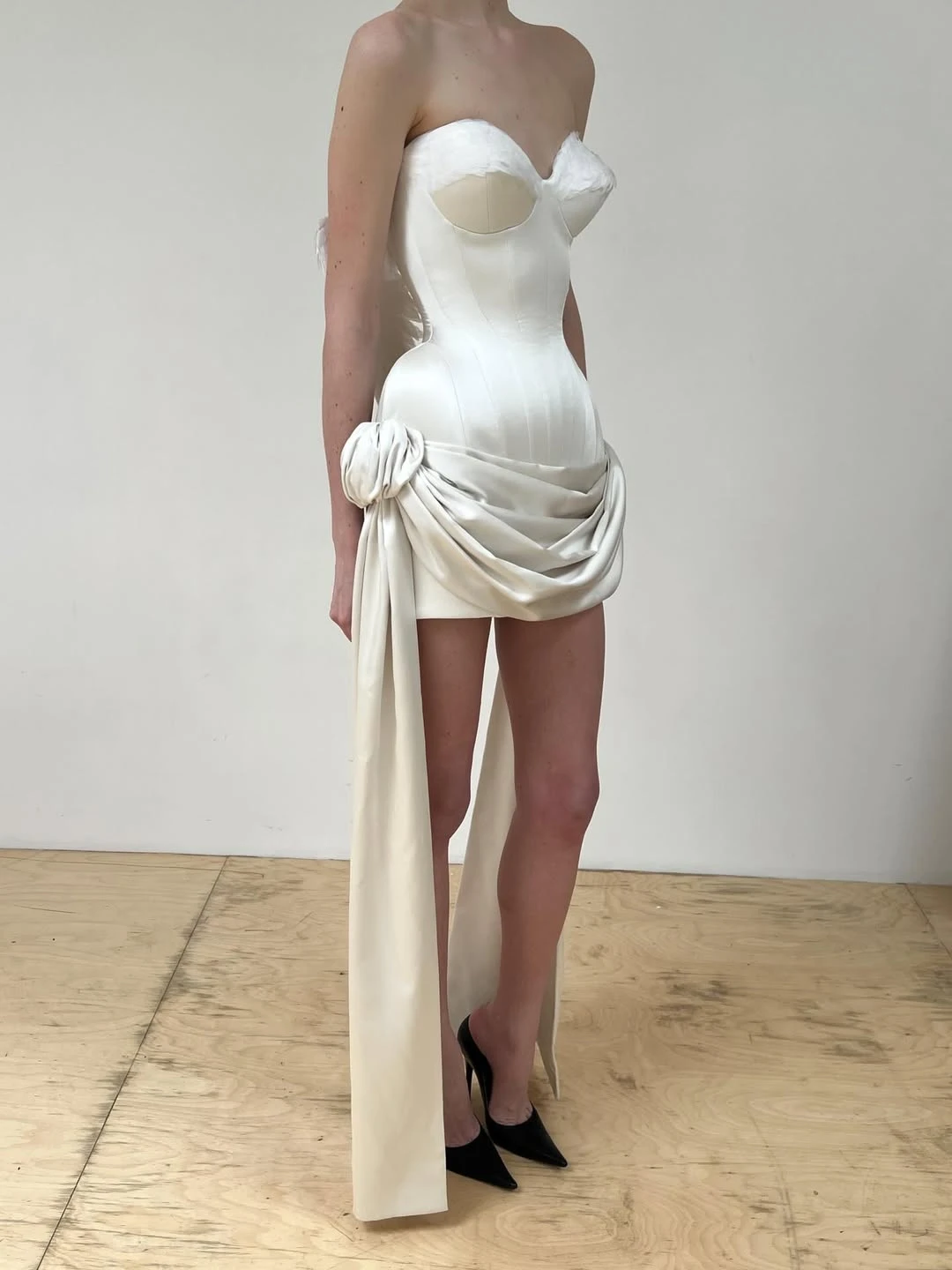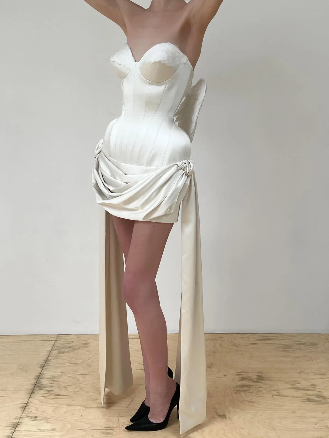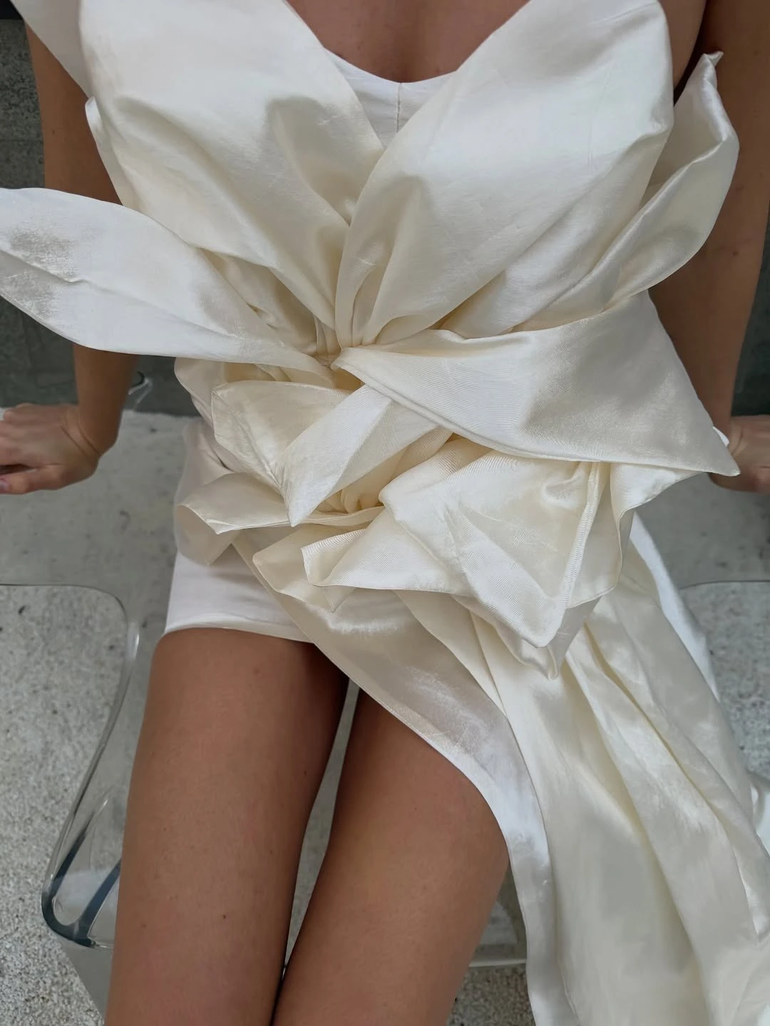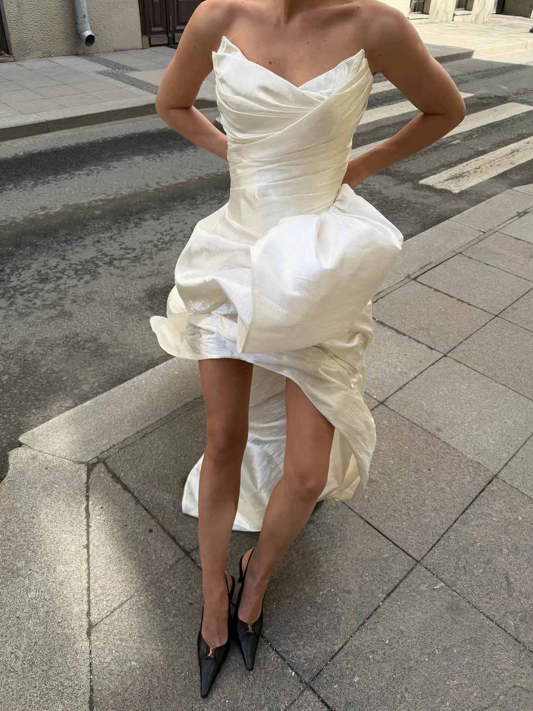 Ультрамини — самый смелый вариант, где длина едва достигает верхней части бедра. Безусловно, такой фасон выглядит провокационно и требует уверенности, а с точки зрения комфорта подходит далеко не всем. Тем не менее для эффектной фотосессии или второго свадебного образа ультракороткое платье может стать ярким модным заявлением.