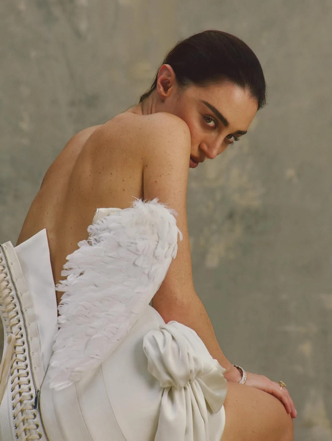 Если же планируется классическая церемония с традиционной эстетикой, стоит обратить внимание на модели с более сдержанным дизайном: длинными рукавами, корсетным верхом или дополнительными элементами — например со шлейфов, декоративной шнуровкой, незамысловатой вышивкой.