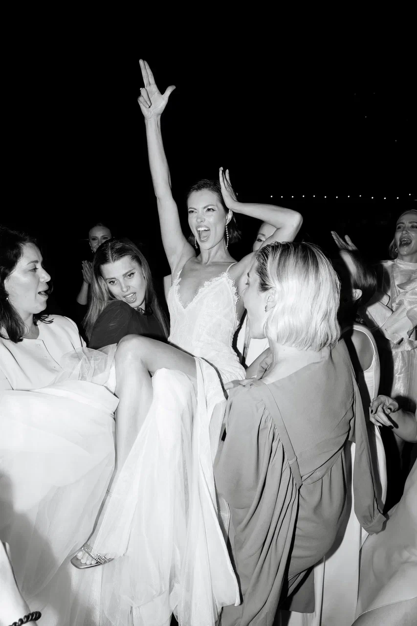 Финалом стал зеркальный торт с надписью This: Is my love. Ироничный, блестящий, как маленькая точка в конце большого признания. Музыка к тому времени уже выключилась, начался «час тишины». И тут произошло то, что никто не мог бы прописать в сценарии: гости сами начали петь акапельно. В этот момент стало понятно, что это не просто свадьба с красивыми деталями, а история, собранная вручную — из любви, дружбы, света и тех самых отражений, ради которых все и затевали.