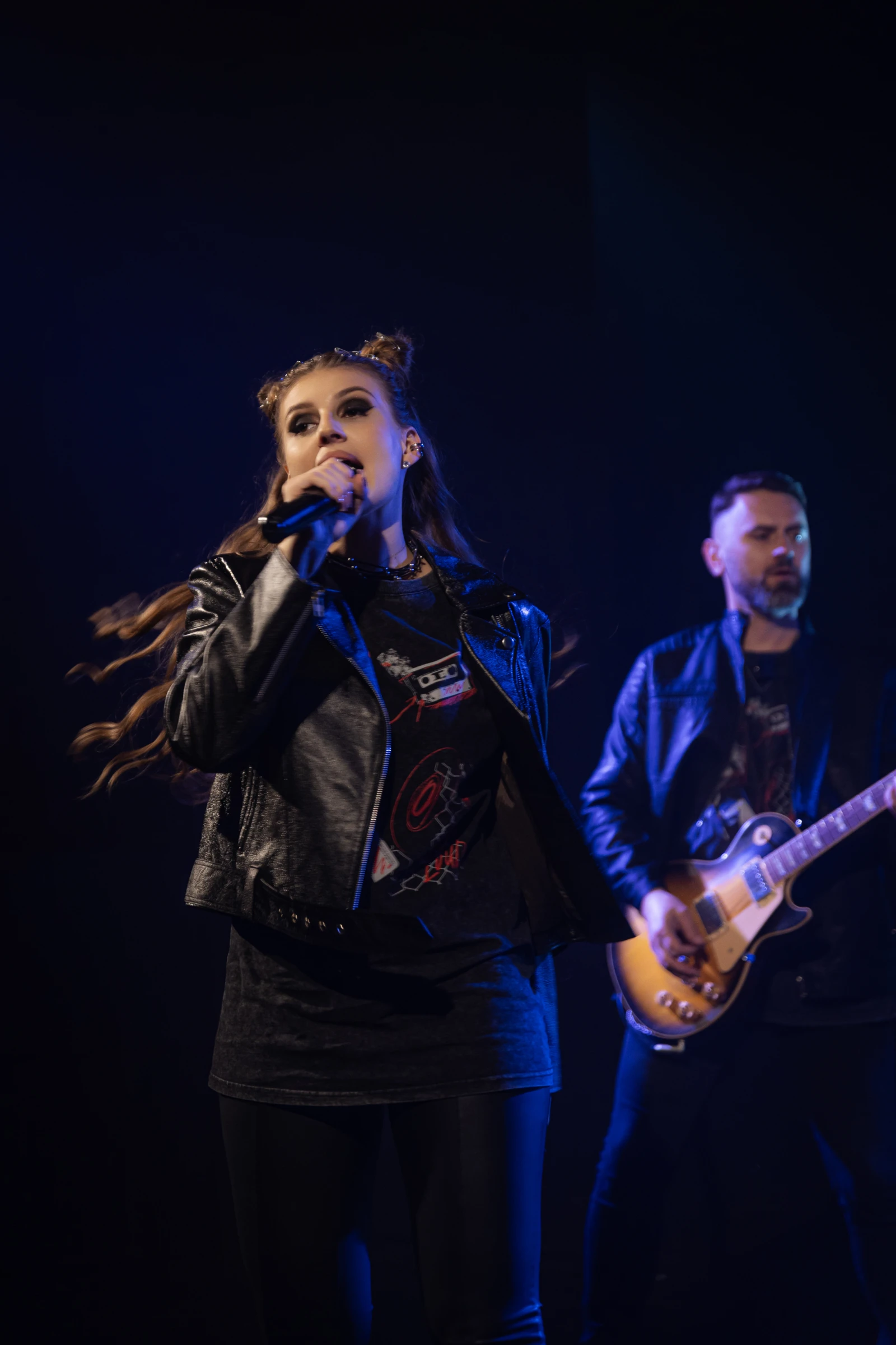Роскошная вокалистка и виртуозный гитарист — наше главное преимущество! Завораживающий тембр голоса Полины и сумасшедшие рифы Андрея надолго остаются в памяти наших гостей.