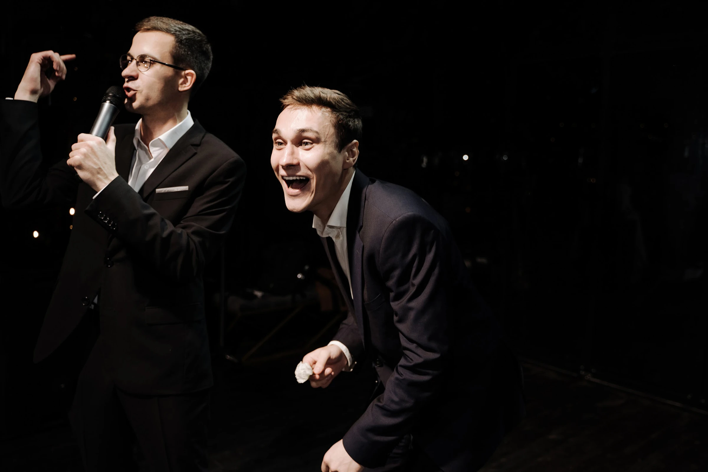 • Дуэт с DJ ALEXSOL (Саша). Молодожёны отмечают нашу сыгранность в отзывах. Саша отвечает за техническую часть и саунд-дизайн, а ещё он шутит песнями и мемами, дополняя мои диалоги с гостями