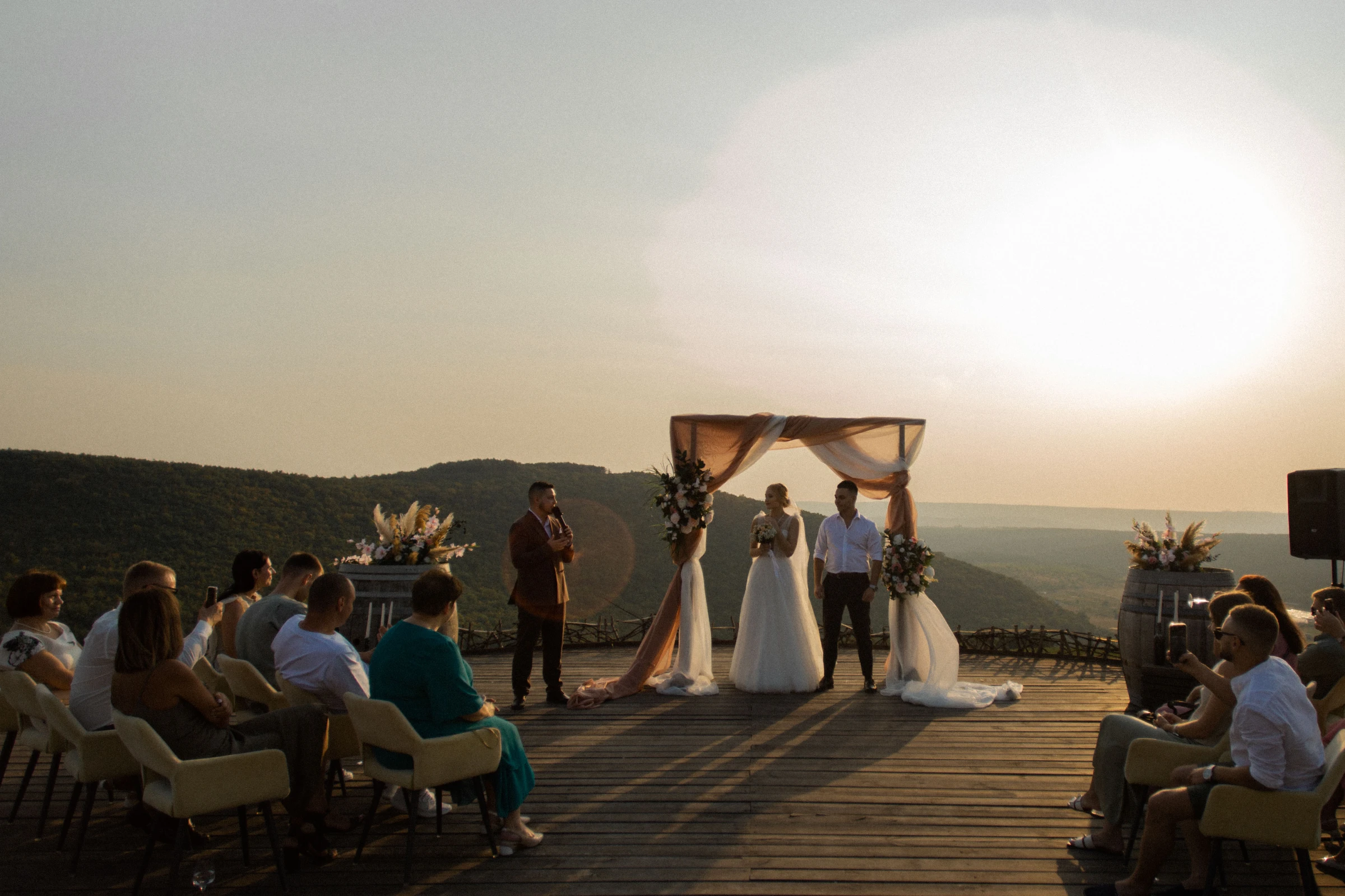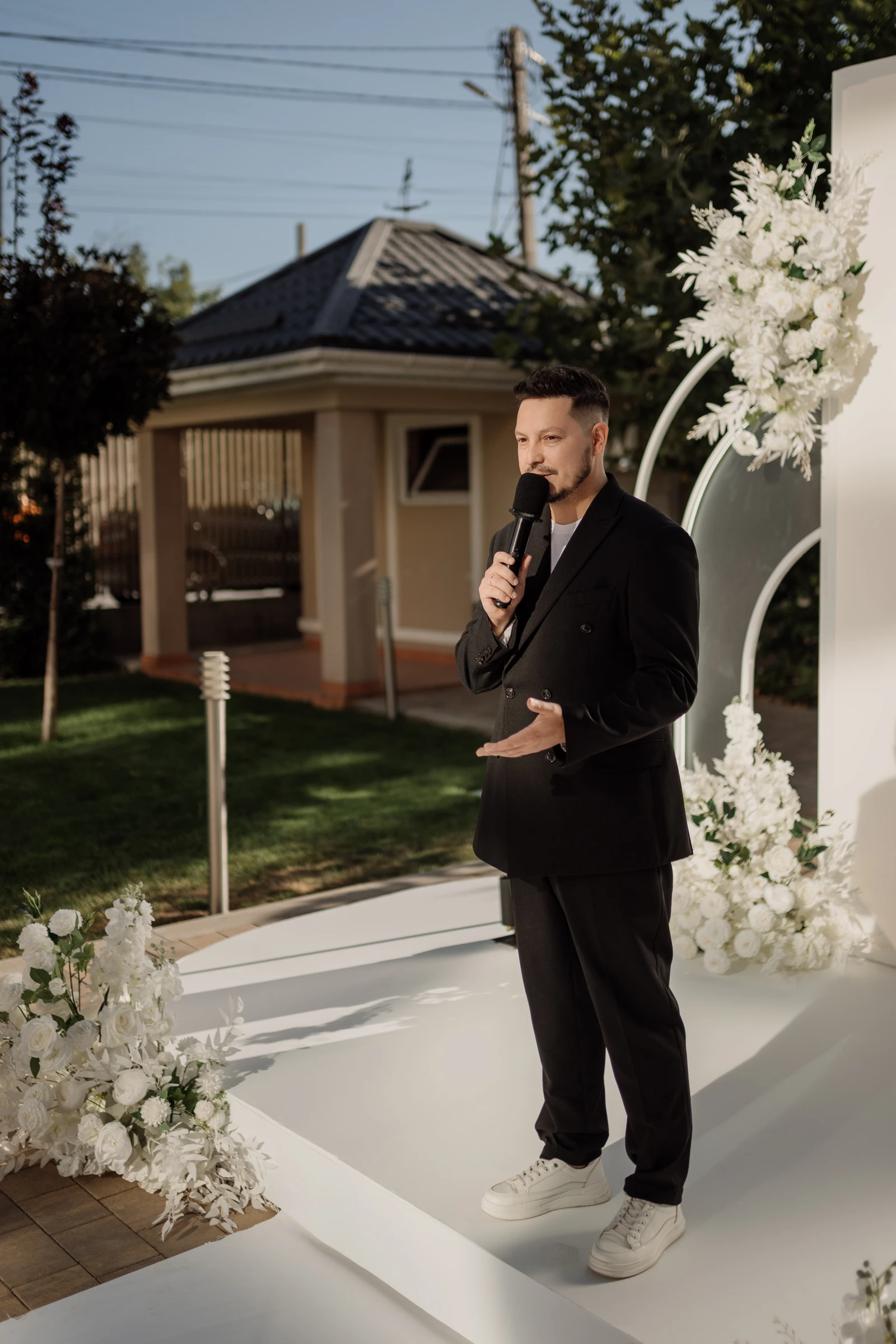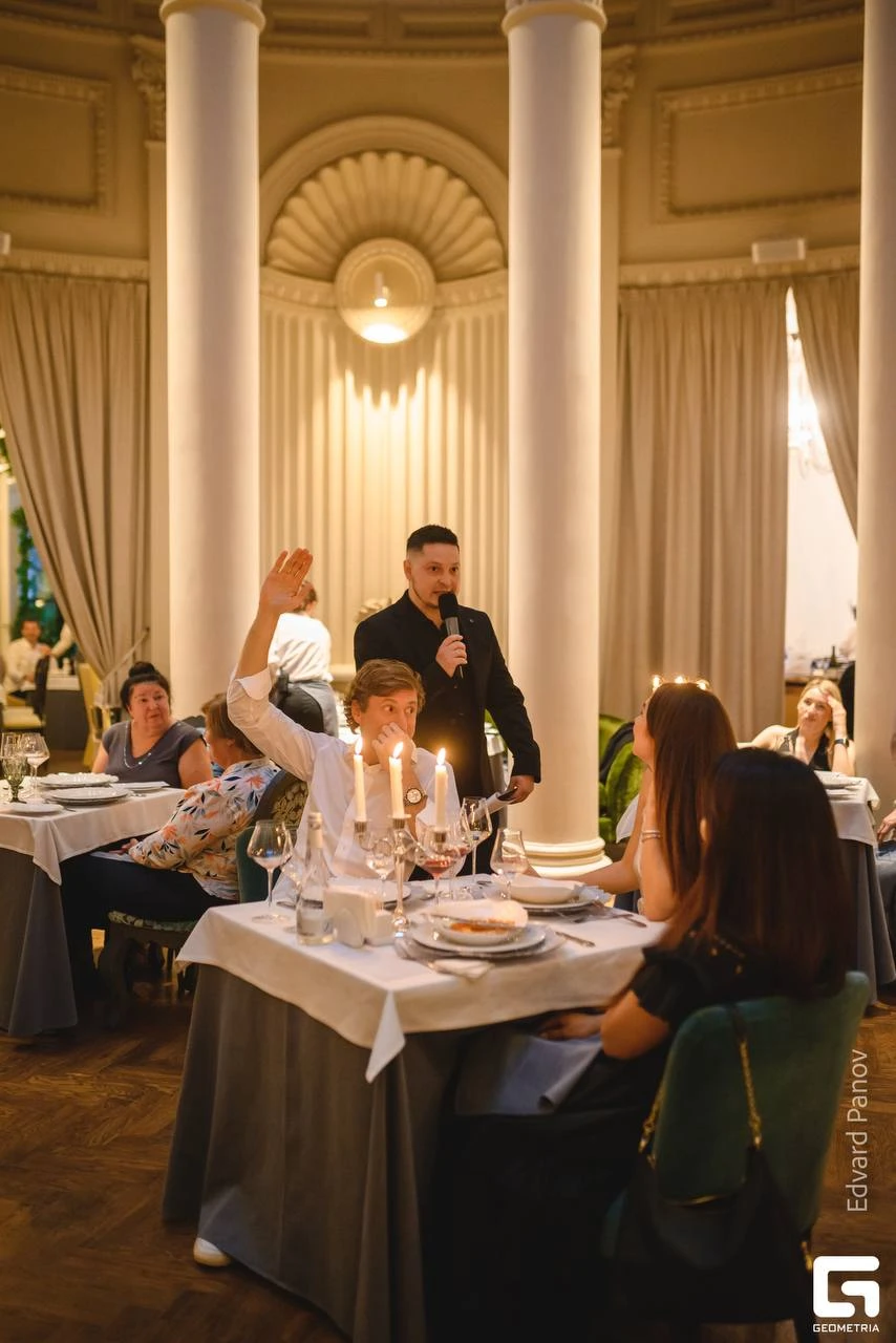 Имею опыт проведения мероприятий разного масштаба: Вел церемонию для двоих, день рождение для 10 человек, свадьбу на 120 самый близких гостей, корпоратив на 260 сотрудников, фестиваль на 12000 жителей и гостей города.