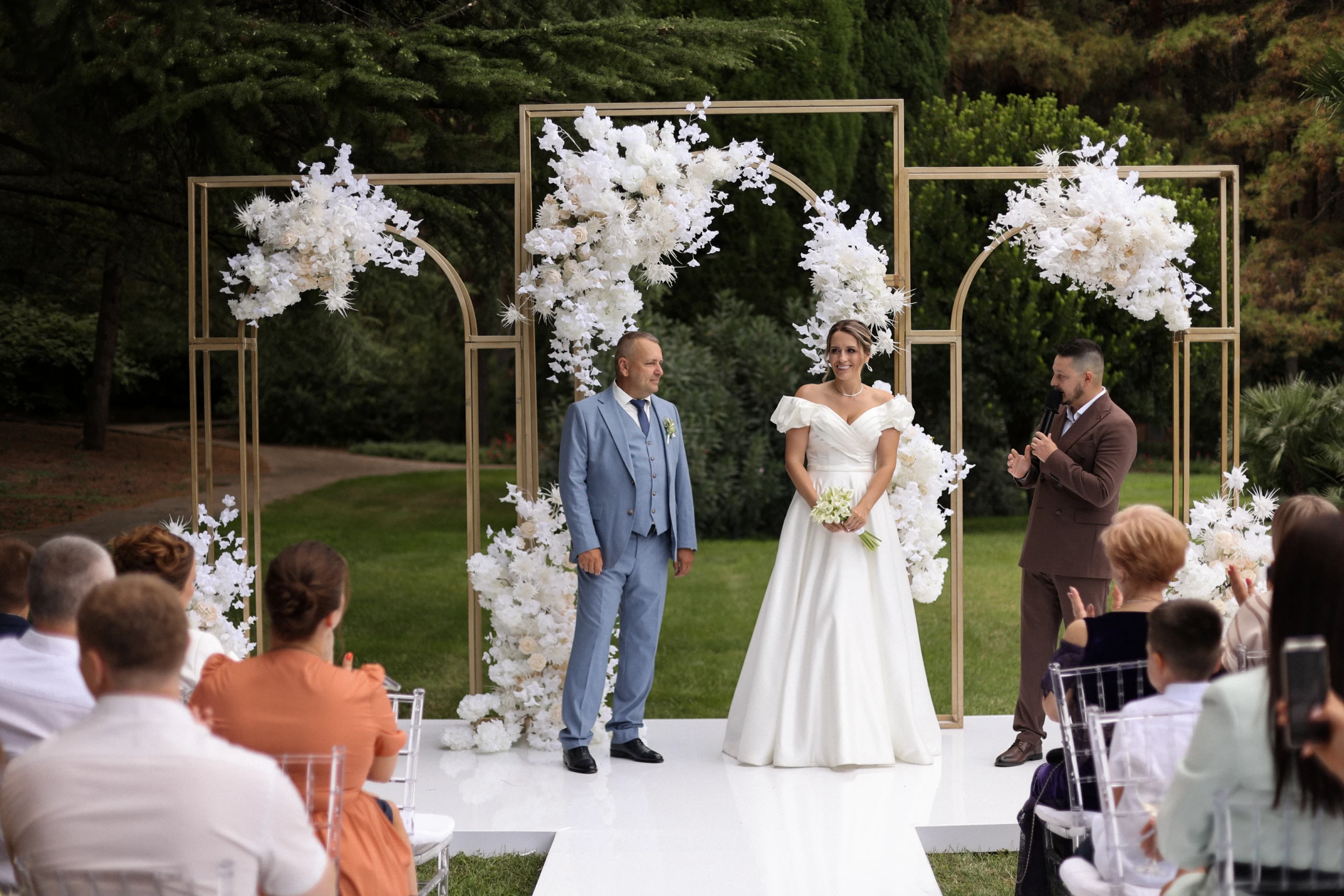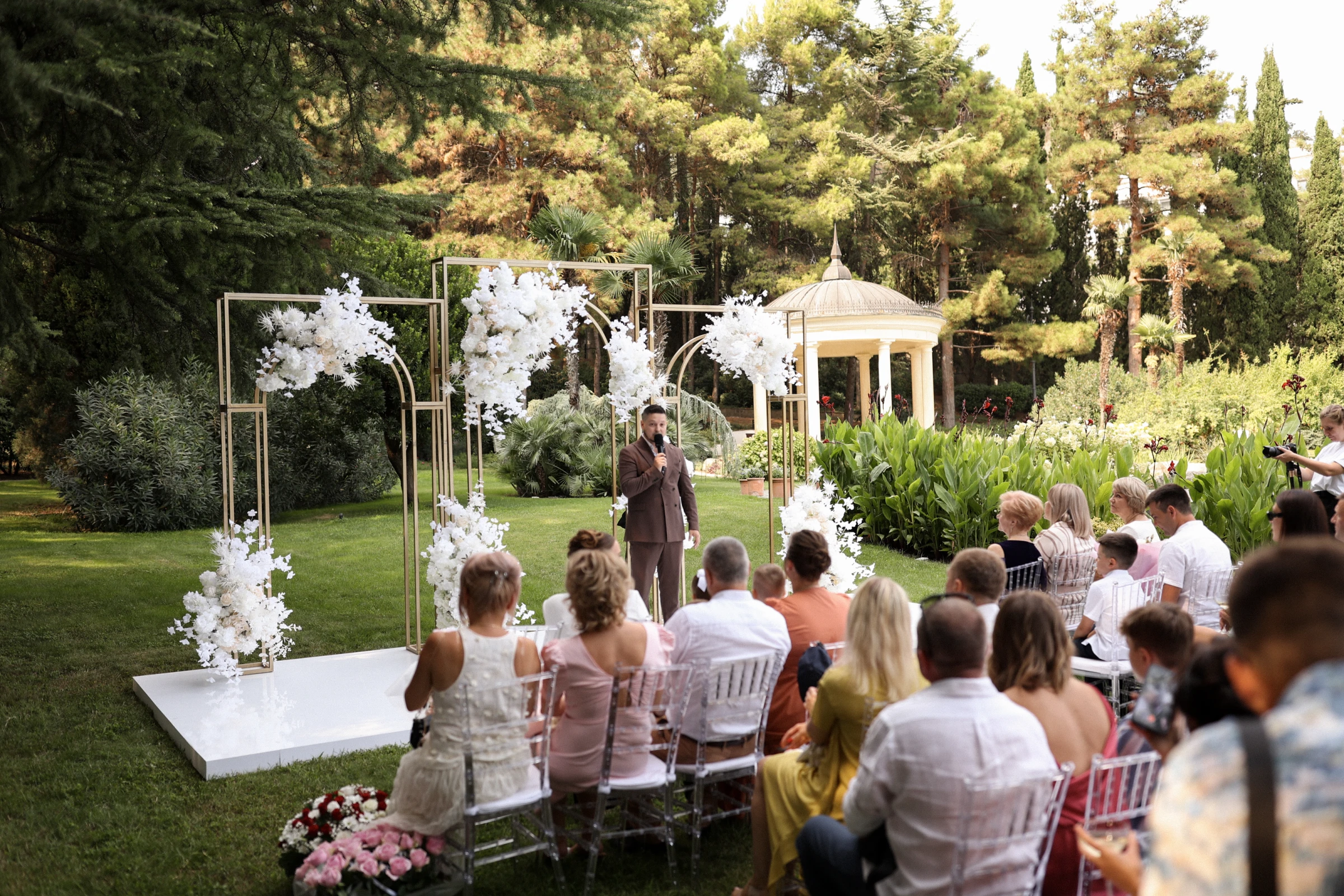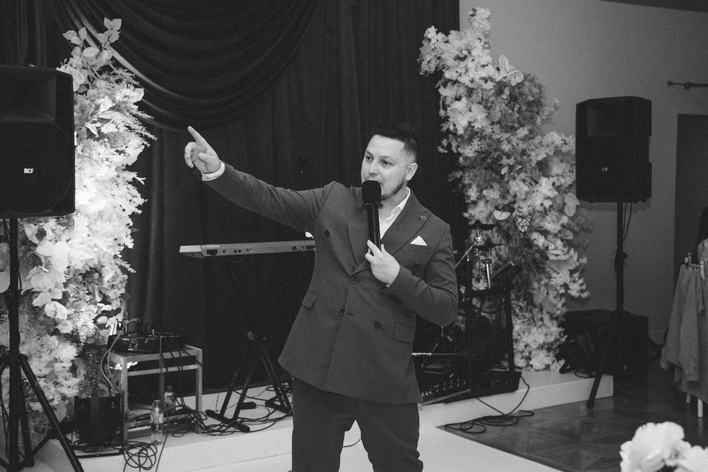 Имею опыт проведения мероприятий разного масштаба: Вел церемонию для двоих, день рождение для 10 человек, свадьбу на 120 самый близких гостей, корпоратив на 260 сотрудников, фестиваль на 12000 жителей и гостей города.