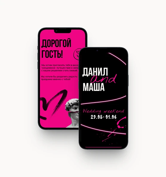 Создаём стильные электронные приглашения. В формате сайта и pdf. Изготовление от 1 дня. Красиво. Трогательно. Современно.