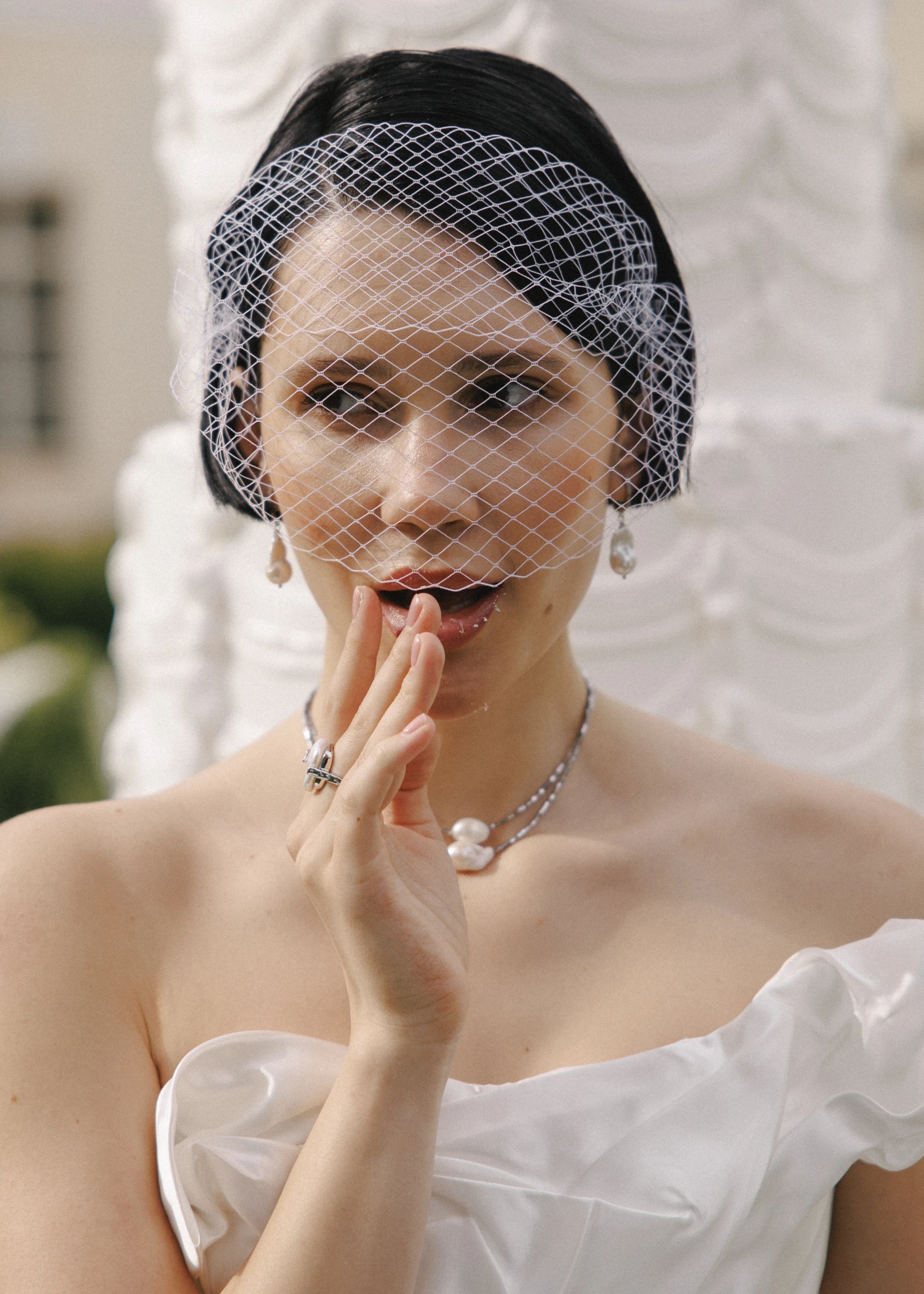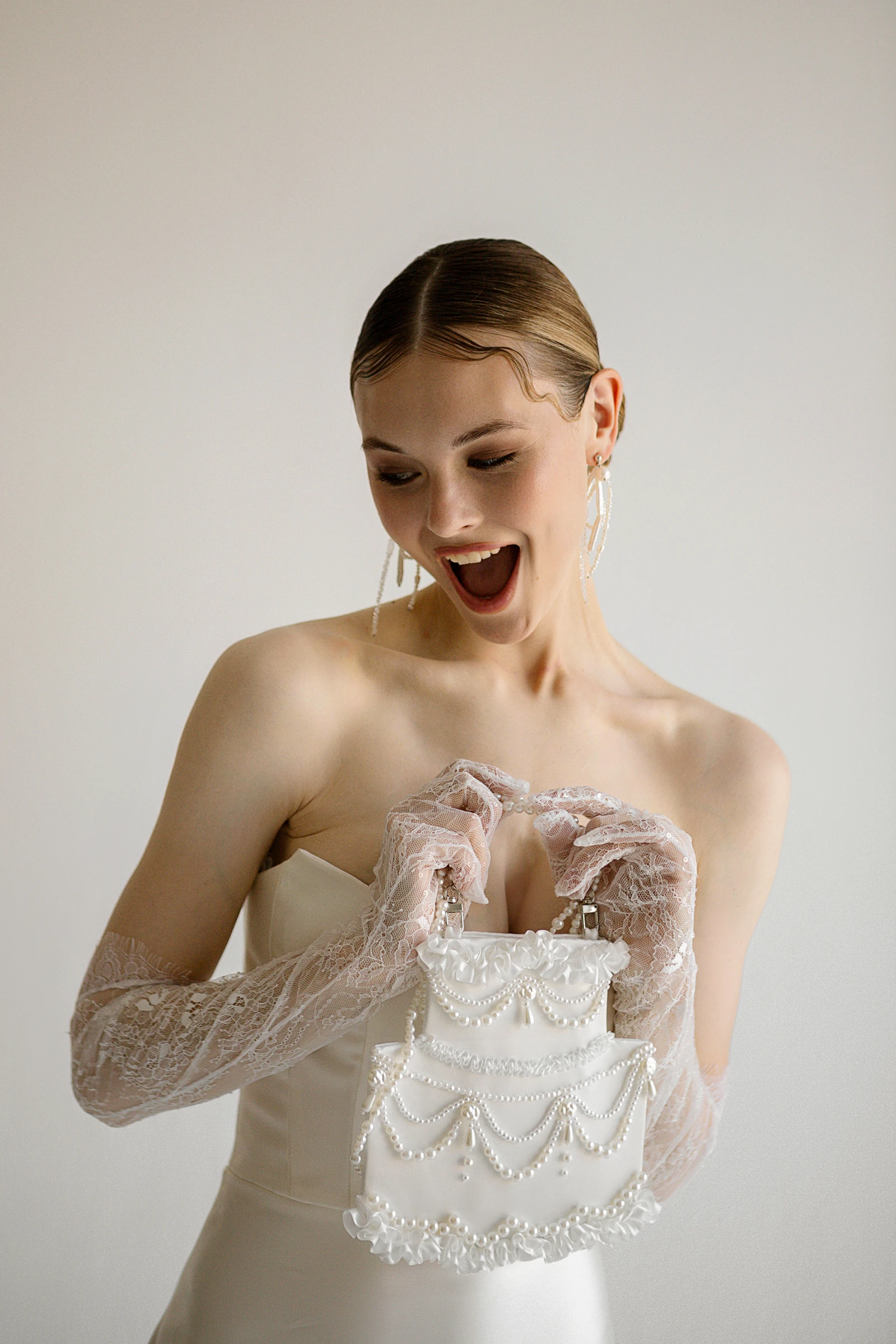 Ассортимент студии Lovely Bride составляют свадебные серьги, моносерьги и каффы, украшения в волосы, колье из жемчуга и хрусталя, а также дизайнерские аксессуары, сумочки и перчатки.