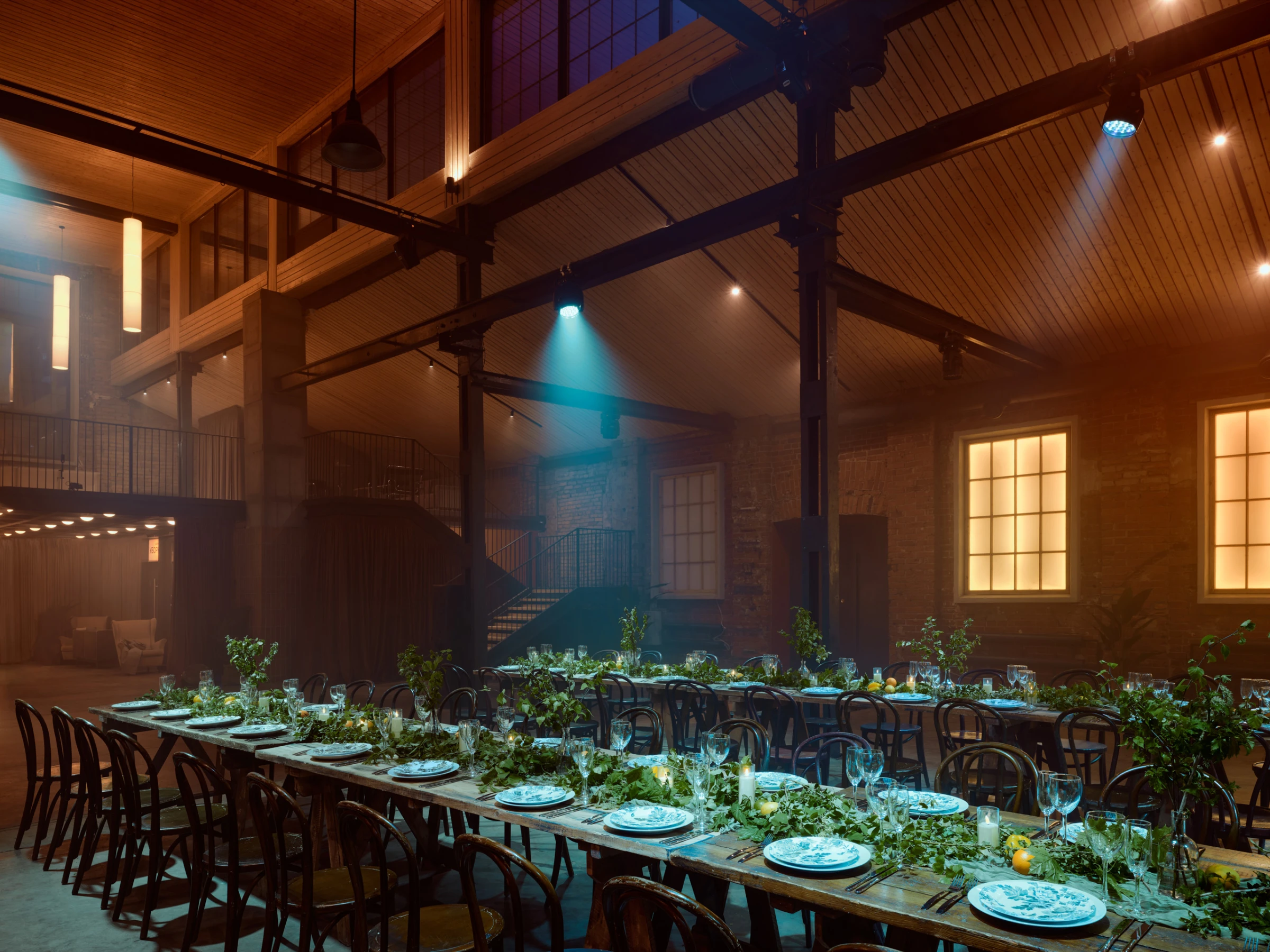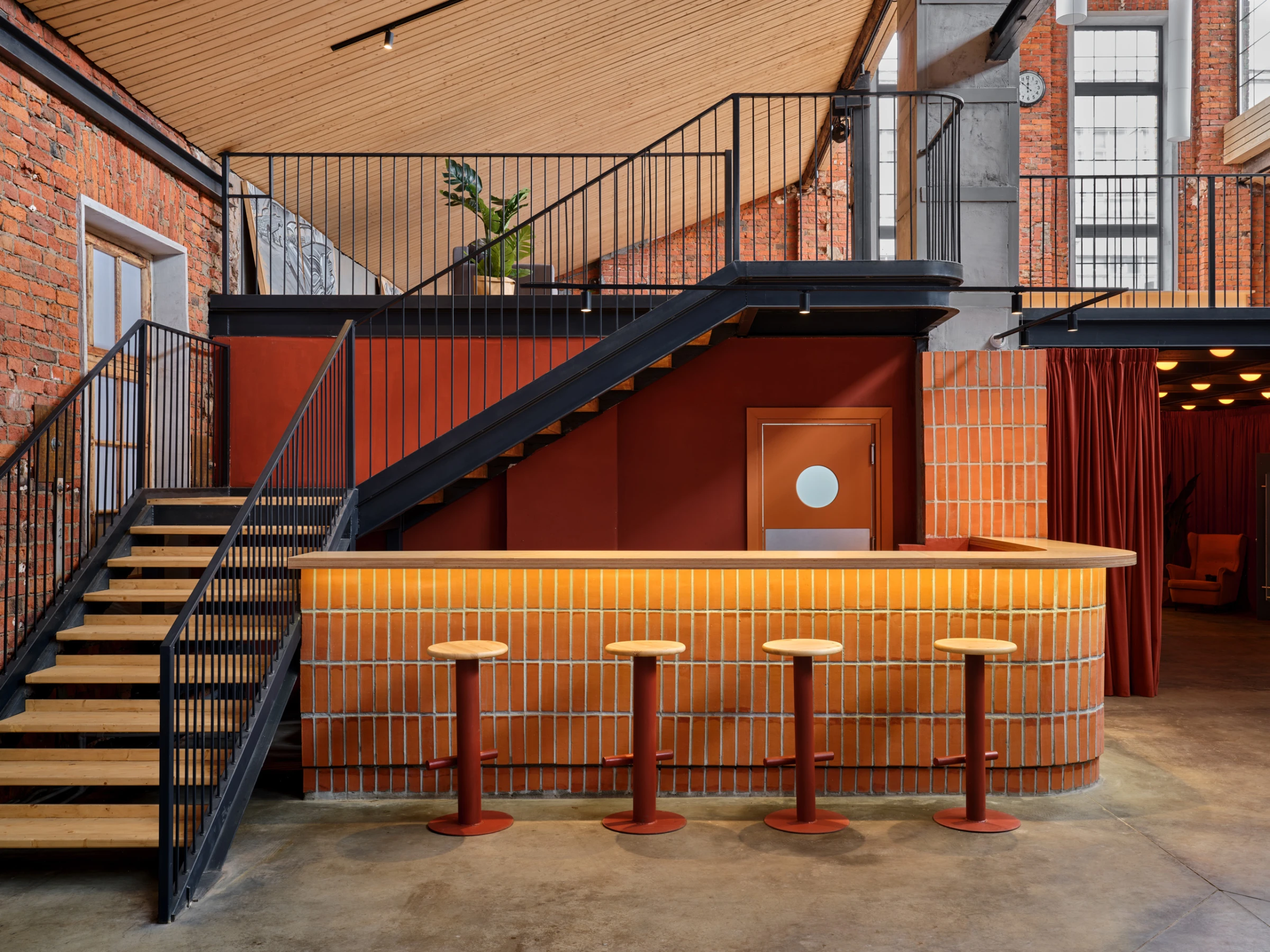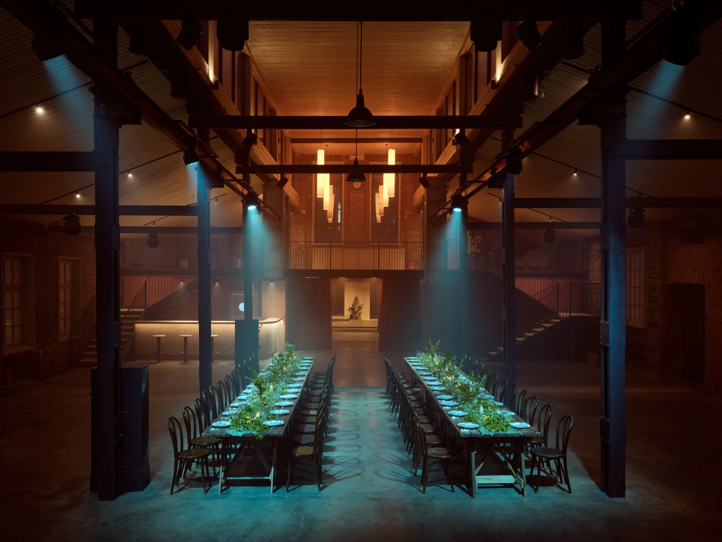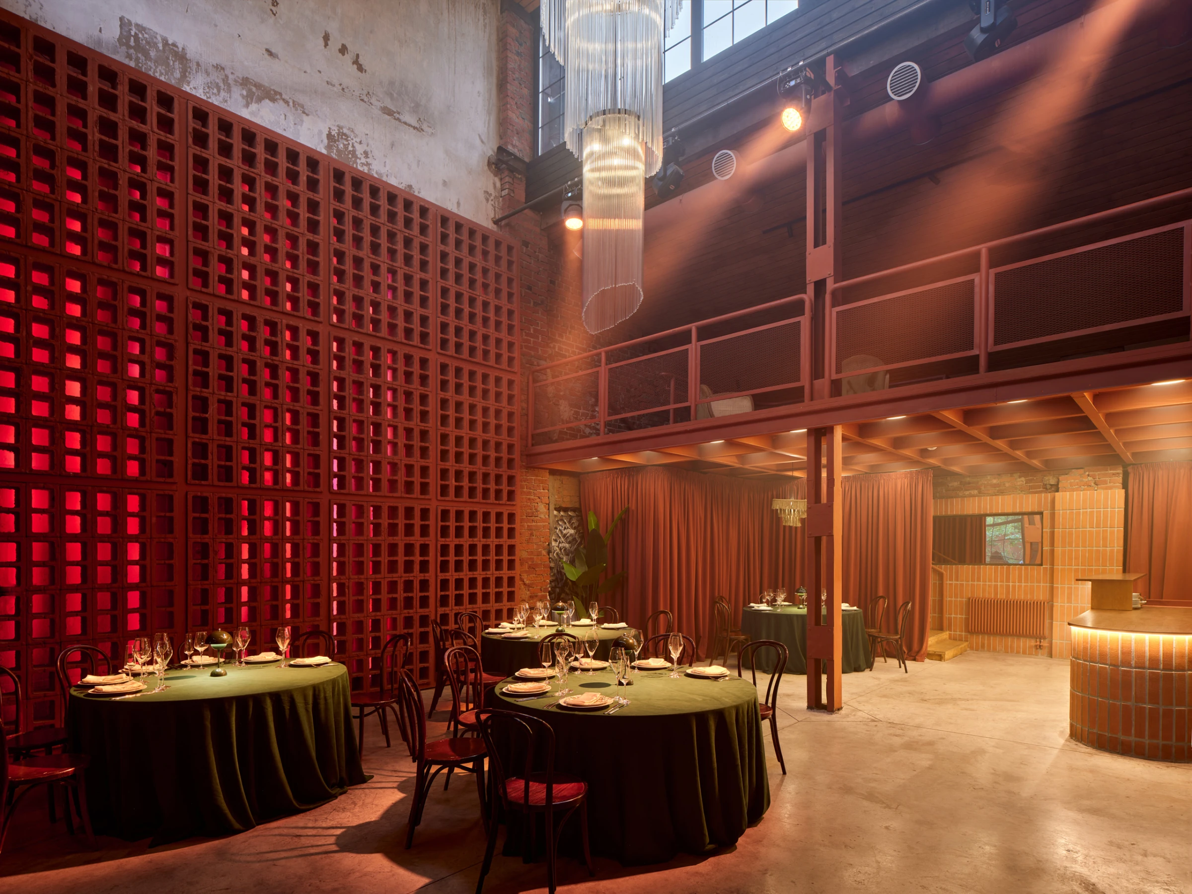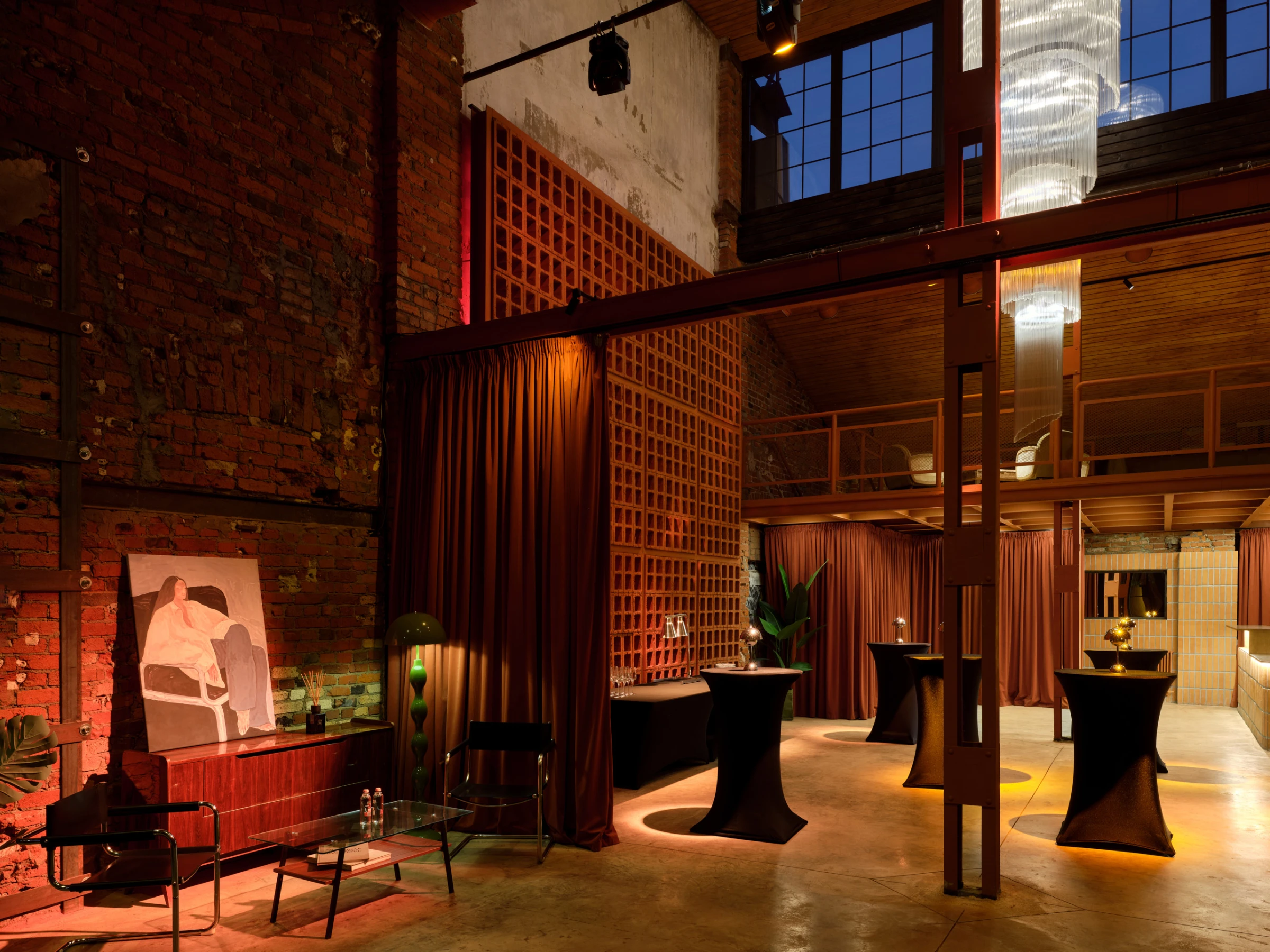 URBAN – двухуровневый зал, который бережно восстановили по чертежам бывшего производства. Фактура векового кирпича остаётся в центре внимания, а мы дополнили её деревянными элементами по своду крыши, современными материалами и винтажной мебелью. Зал позволяет разместить банкетом до 380 гостей, фуршетом до 1000 гостей.