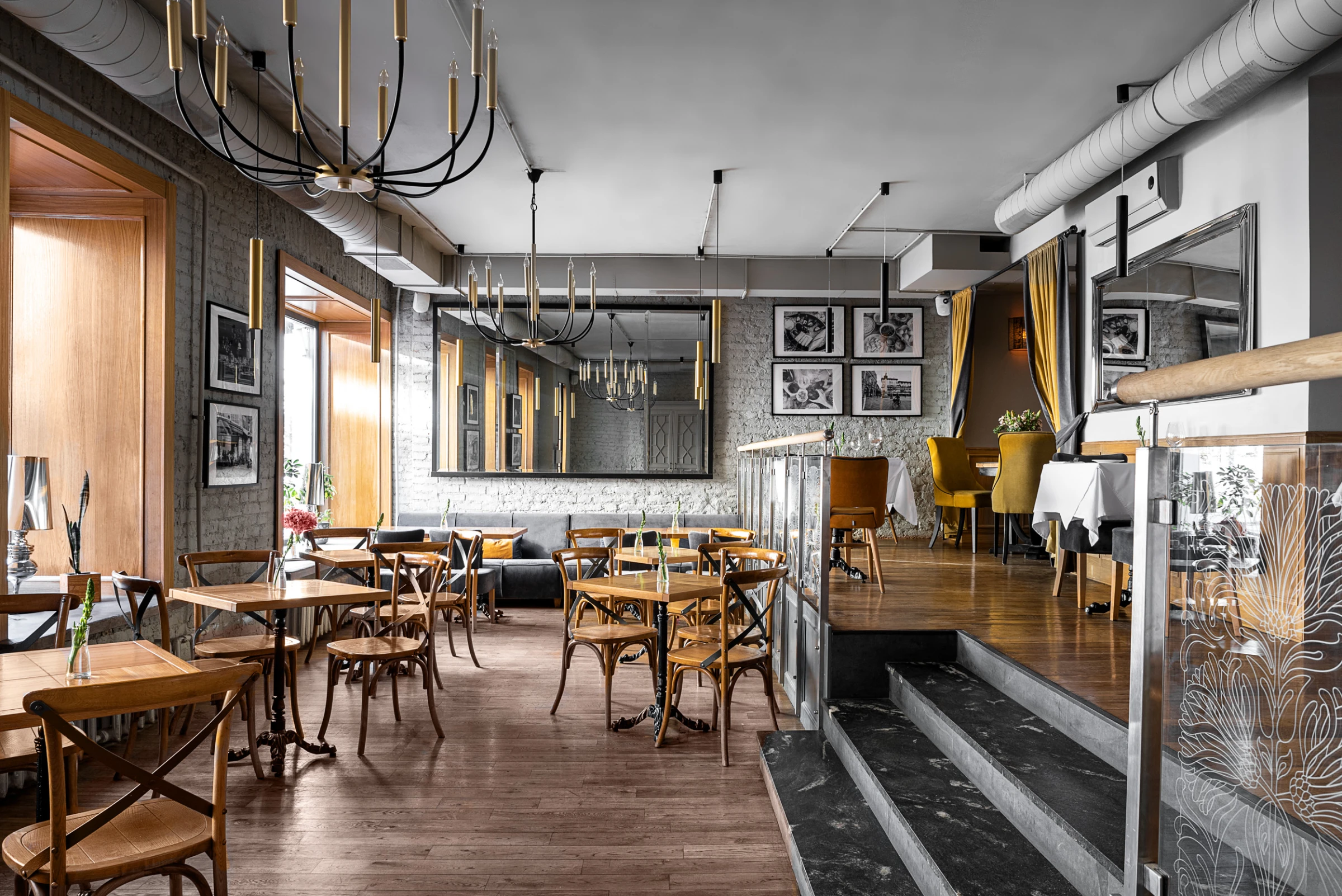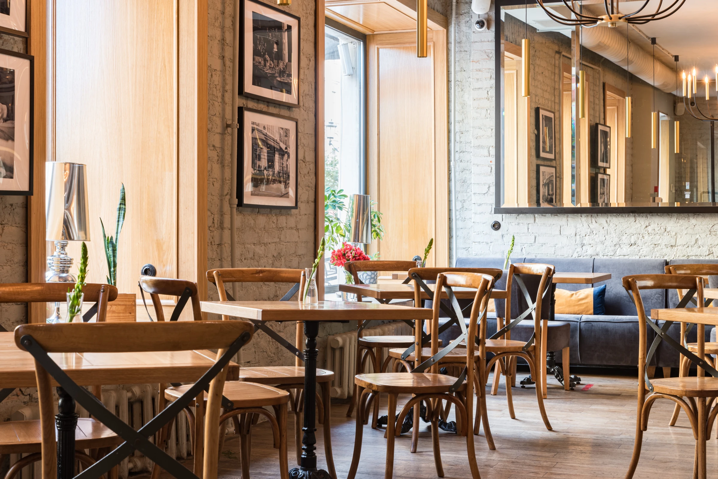 Светлый зал с панорамными окнами и удобное расположение делают Arancino отличным выбором для вашего дня.