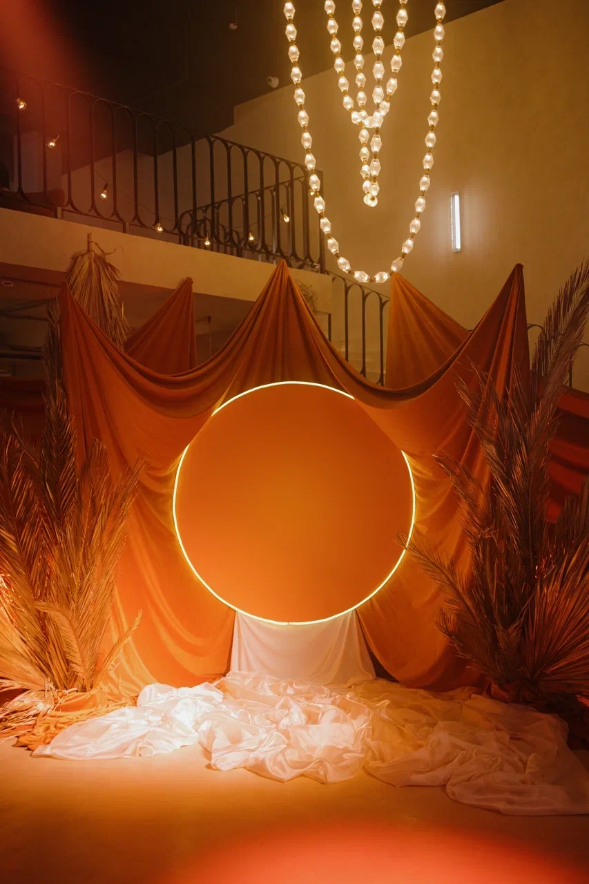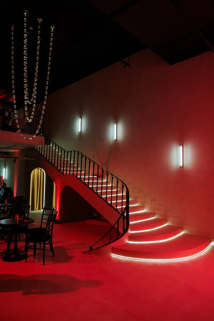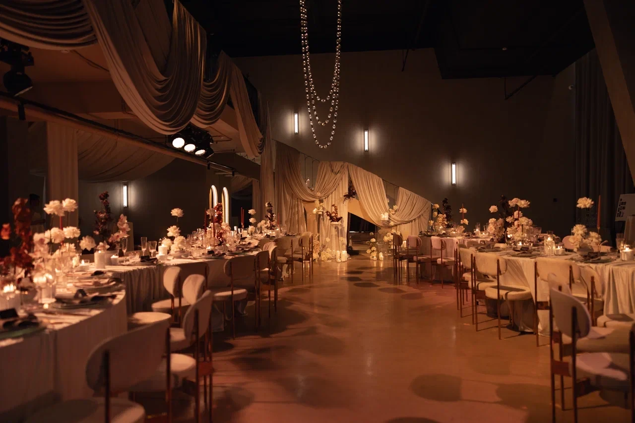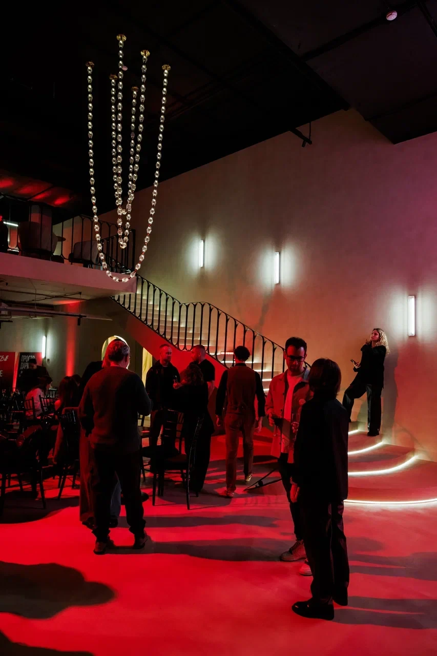 SVOY ХАМОВНИКИ — эксклюзивная площадка для мероприятий в самом сердце Москвы, в историческом и престижном районе Хамовники. Пространство выполнено в дизайнерском интерьере, оформленном в трендовом цвете Pantone 2025, что подчёркивает современный взгляд на эстетику и создаёт актуальную визуальную среду для мероприятий любого уровня. Центральным элементом зала стала уникальная дизайнерская люстра, которая формирует выразительный акцент и усиливает атмосферу изысканности.