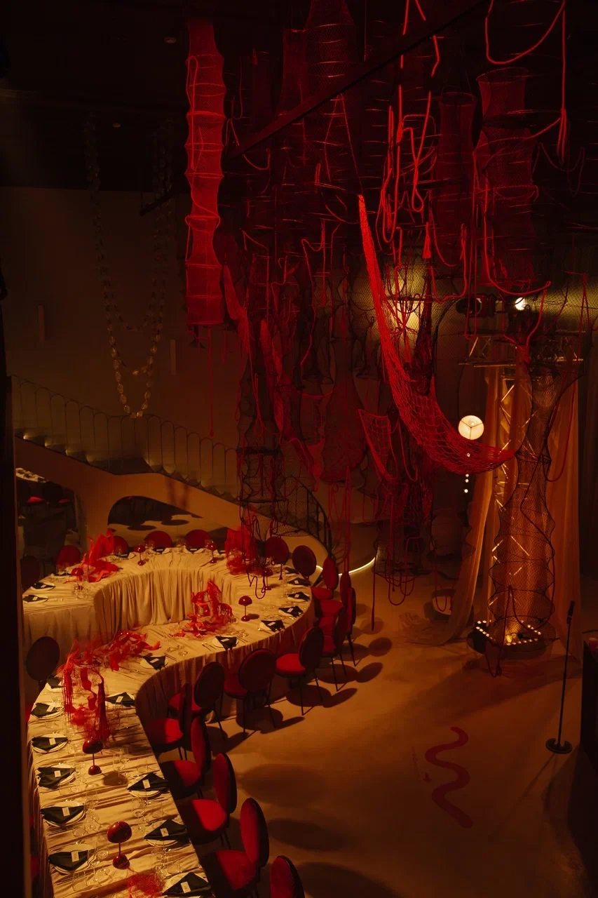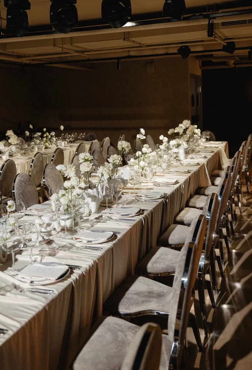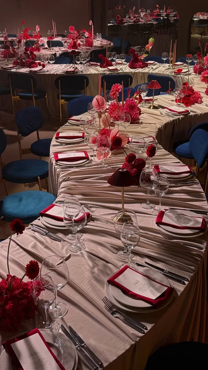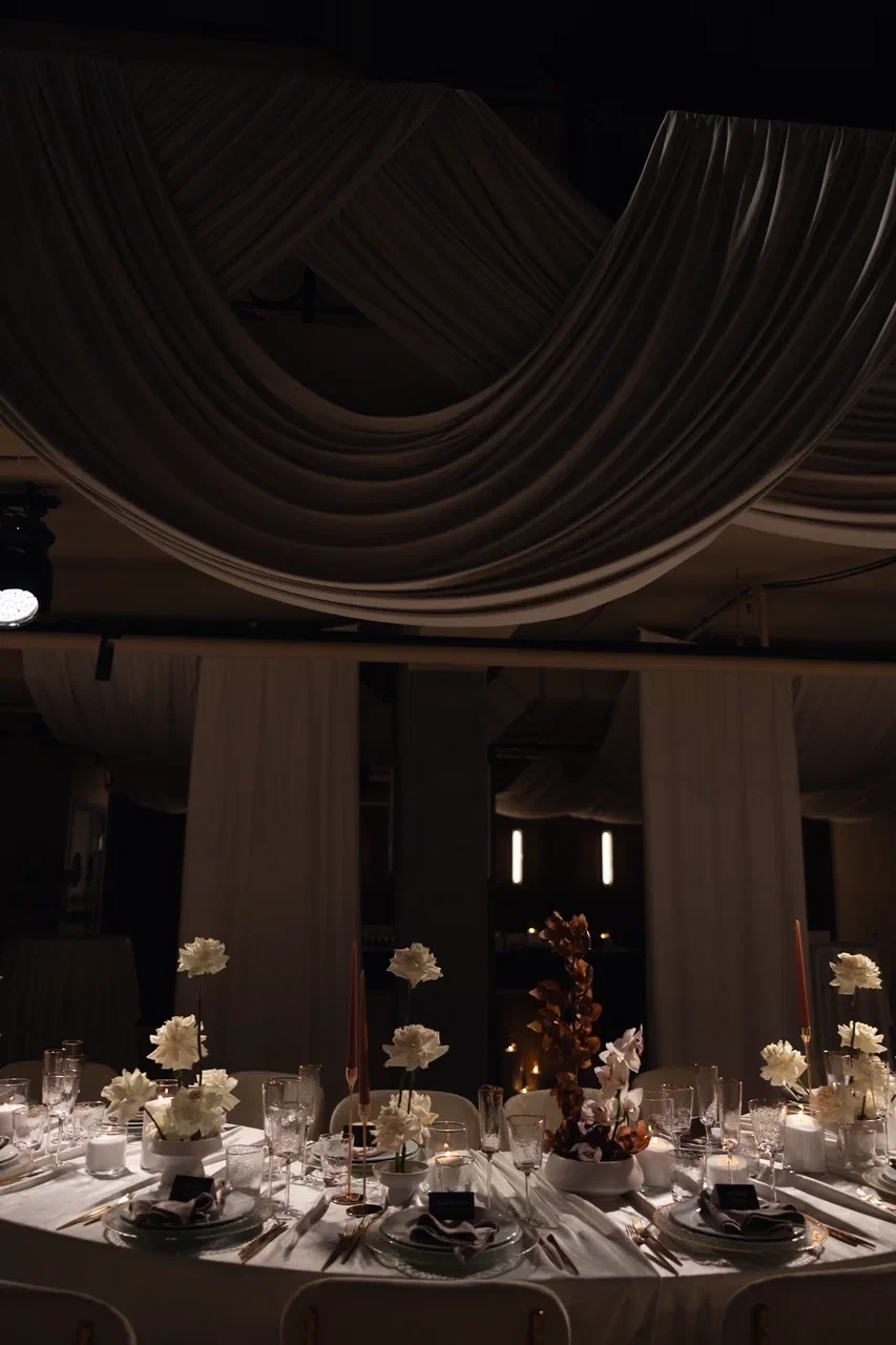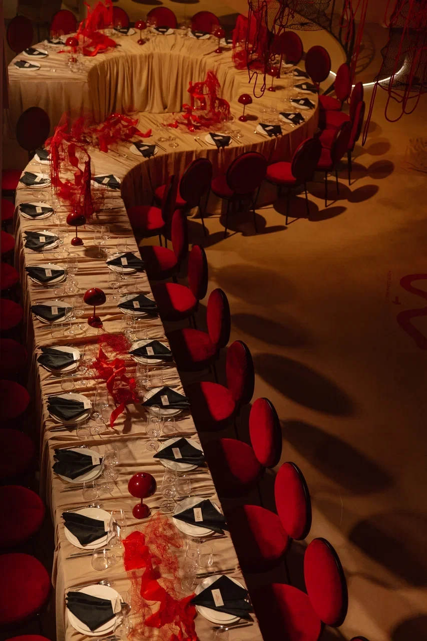 SVOY ХАМОВНИКИ — эксклюзивная площадка для мероприятий в самом сердце Москвы, в историческом и престижном районе Хамовники. Пространство выполнено в дизайнерском интерьере, оформленном в трендовом цвете Pantone 2025, что подчёркивает современный взгляд на эстетику и создаёт актуальную визуальную среду для мероприятий любого уровня. Центральным элементом зала стала уникальная дизайнерская люстра, которая формирует выразительный акцент и усиливает атмосферу изысканности.